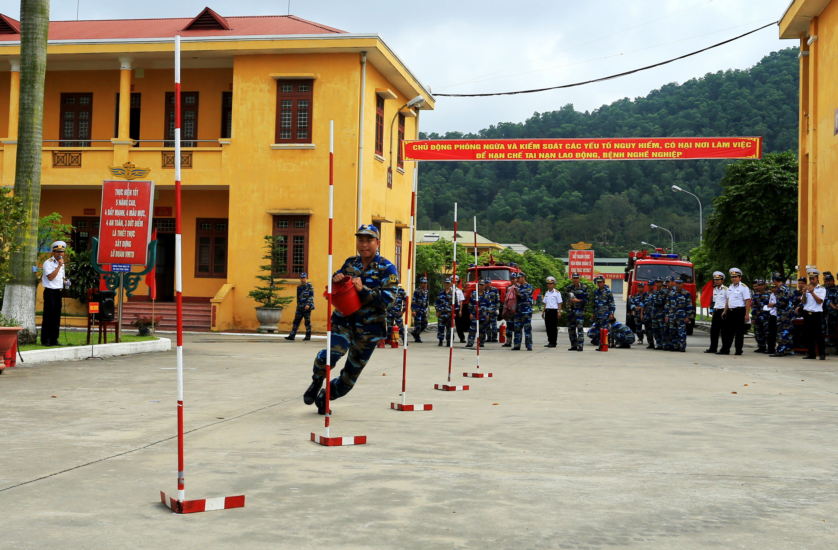 Ngay sau lễ mít tinh, Lữ đoàn đã tổ chức Hội thao phòng cháy, chữa cháy. 5 đội tham gia hội thao gồm: Cơ quan Lữ đoàn, Đội Hỏa lực, Trạm Điều khiển, Trạm Kỹ thuật và Trạm Thông tin-Ra đa. Ngoài nội dung chấm điểm về công tác huấn luyện AT-VSLĐ, các đội đều phải thực hành: Vượt vật cản múc nước; dập tắt đám cháy bằng chăn, bình cứu hỏa; lắp vòi rồng và vận hành máy bơm.