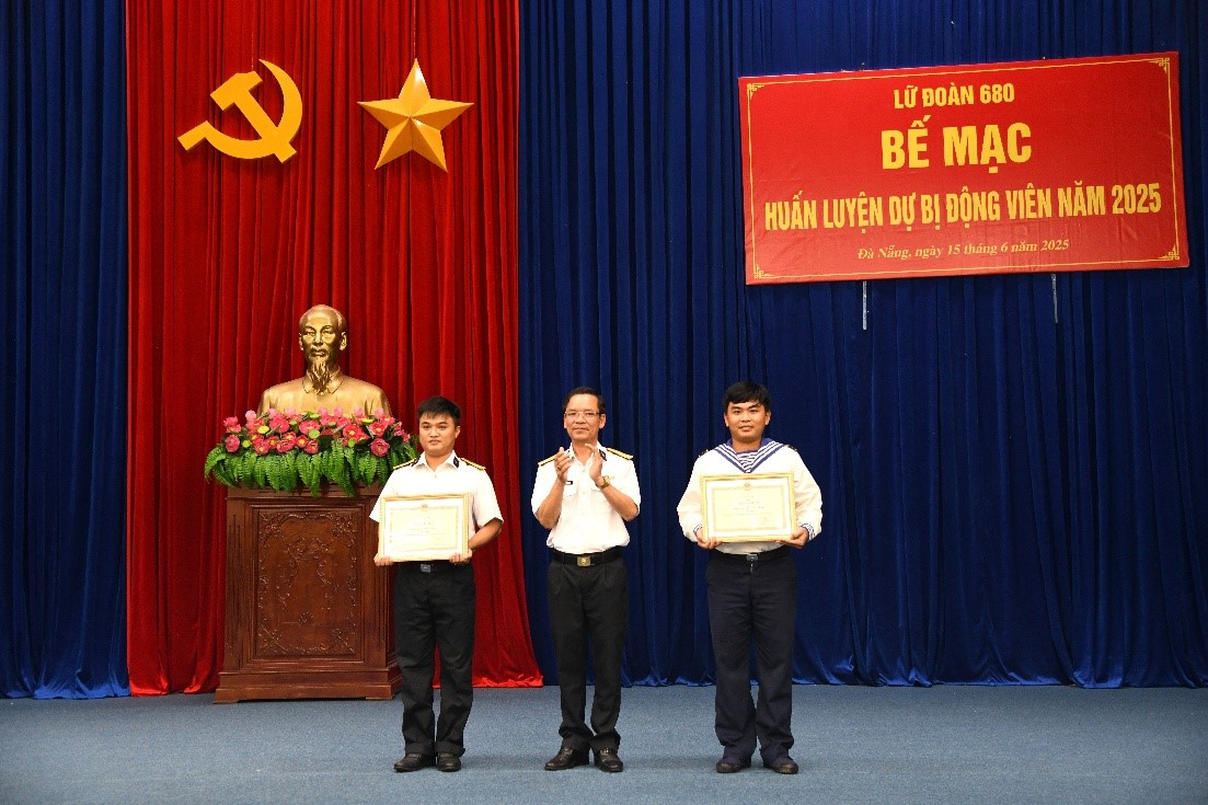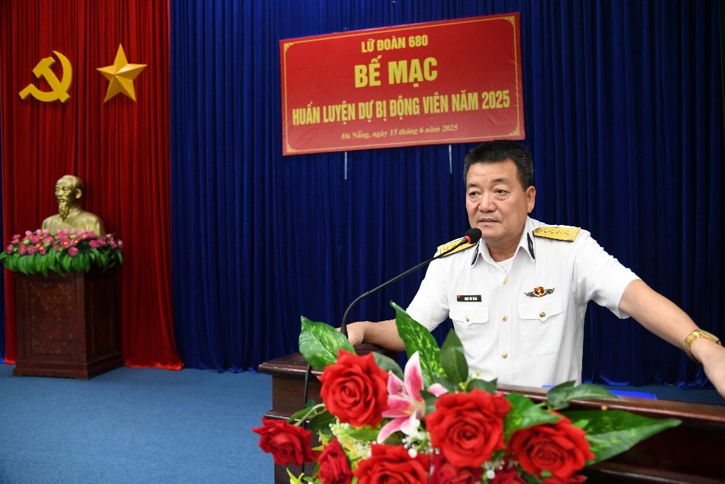 Chiều 15/6, tại Đà Nẵng, Lữ đoàn 680, Vùng 3 Hải quân tổ chức bế mạc huấn luyện dự bị động viên năm 2025. Đại tá Phạm Văn Toàn, Lữ đoàn trưởng dự, chỉ đạo. Tham dự có các đồng chí trong Đảng ủy, chỉ huy Lữ đoàn 680; đại biểu Ban chỉ huy quận Sơn Trà, TP. Đà Nẵng.