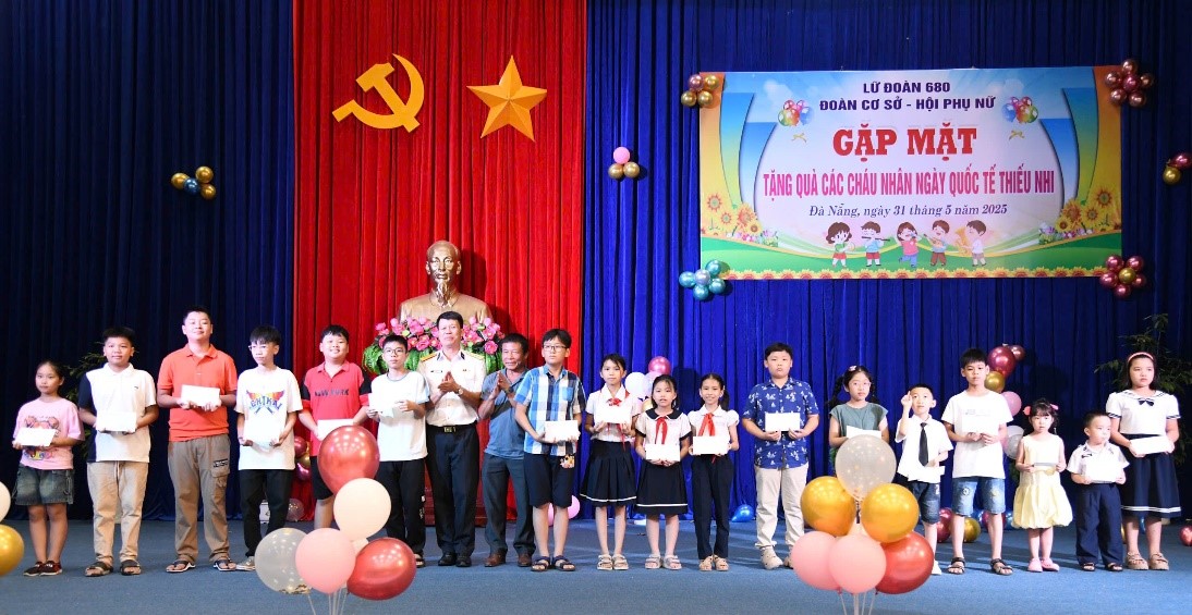 Tối 31/5, tại Đà Nẵng, Đoàn cơ sở và Hội phụ nữ Lữ đoàn 680, Vùng 3 Hải quân phối hợp tổ chức gặp mặt, tặng quà các cháu thiếu niên, nhi đồng là con của cán bộ, nhân viên trong Lữ đoàn đạt thành tích xuất sắc trong năm học 2024-2025. Thượng tá Nguyễn Thanh Minh, Phó Chính uỷ Lữ đoàn tới dự.
