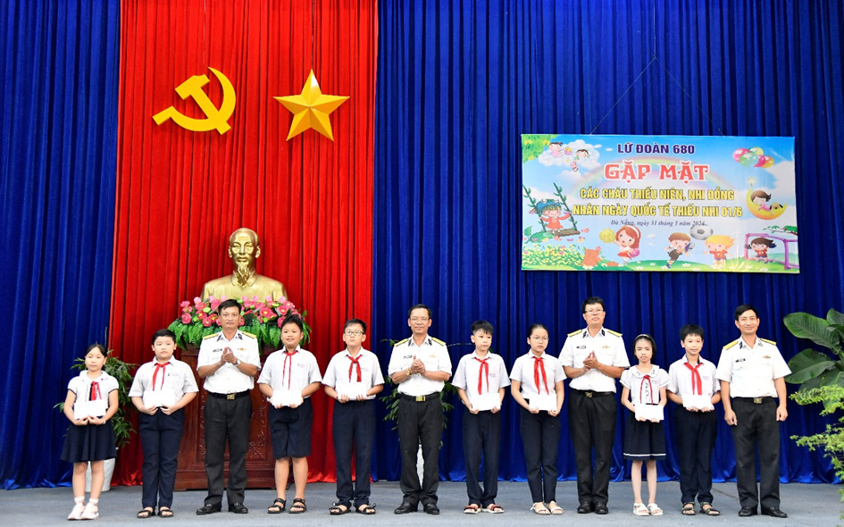 Chiều 31/5, tại Đà Nẵng, Lữ đoàn 680, Vùng 3 Hải quân tổ chức gặp mặt và tặng quà các cháu thiếu niên, nhi đồng là con của quân nhân Lữ đoàn nhân ngày Quốc tế thiếu nhi 1/6. Đại tá Phạm Văn Toàn, Lữ đoàn trưởng chủ trì.