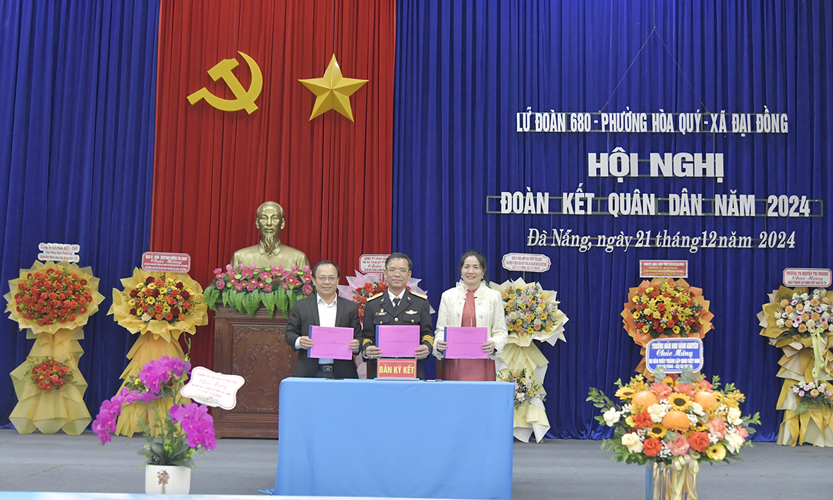 Chiều 21/12, tại TP. Đà Nẵng, Lữ đoàn 680, Vùng 3 Hải quân tổ chức Hội nghị đoàn kết quân dân năm 2024. Đại tá Nguyễn Duy Long, Chính ủy Lữ đoàn chủ trì. Tham dự có các đồng chí trong Đảng ủy, chỉ huy Lữ đoàn 680; đại biểu phường Hoà Quý, quận Ngũ Hành Sơn, TP. Đà Nẵng và xã Đại Đồng, huyện Đại Lộc, tỉnh Quảng Nam; đại diện một số doanh nghiệp trên địa bàn TP. Đà Nẵng.