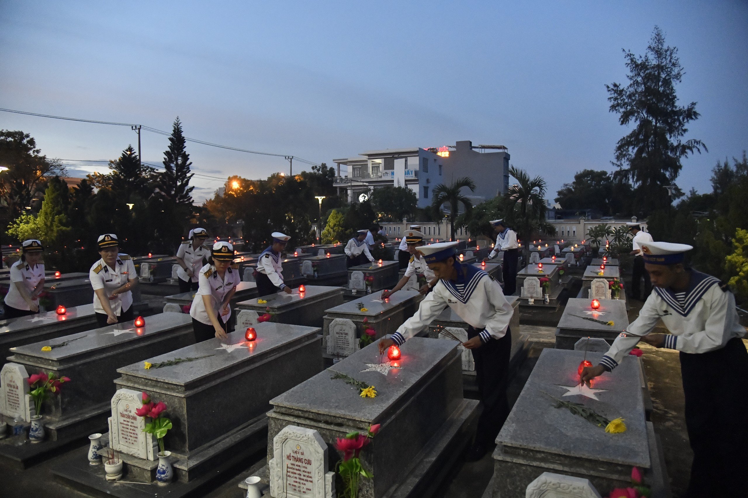 Tuổi trẻ Lữ đoàn 680 thắp nến tri ân các Anh hùng liệt sĩ tại Nghĩa trang phường Hoà Quý