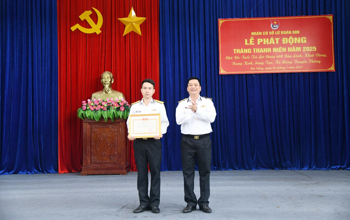 Sáng 3/3, tại Đà Nẵng, Đoàn cơ sở Lữ đoàn 680, Vùng 3 Hải quân tổ chức Lễ phát động Tháng thanh niên với chủ đề “Tuổi trẻ Lữ đoàn 680 bản lĩnh, khát vọng, xung kích, sáng tạo, tô hồng truyền thống”.