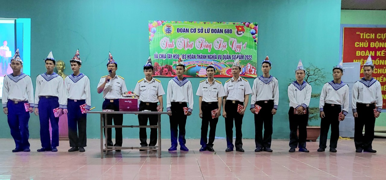 Tối 11/1 tại Đà Nẵng, Đoàn cơ sở Lữ đoàn 680, Vùng 3 Hải quân tổ chức sinh nhật đồng đội quý 1 và chia tay quân nhân hoàn thành nghĩa vụ quân sự năm 2022. Đến dự và chỉ đạo có Đại tá Lưu Thanh Chương, Bí thư Đảng uỷ, Chính uỷ Lữ đoàn; các đồng chí trong Đảng uỷ, chỉ huy cùng toàn thể cán bộ, chiến sĩ.