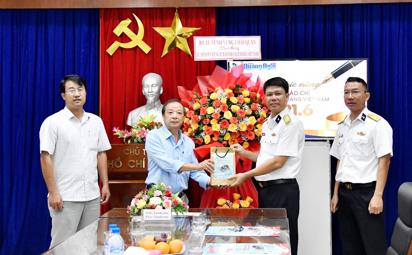 Thủ trưởng Lữ đoàn 680 tặng hoa chúc mừng cơ quan báo chí tỉnh Quảng Ngãi