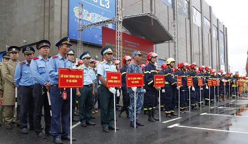 Tham gia buổi diễn tập, Lữ đoàn 680, Vùng 3 Hải quân được giao nhiệm vụ cử 1 xe cứu hỏa và gần 20 cán bộ, chiến sĩ tham gia diễn tập theo sự phân công của Ban tổ chức.