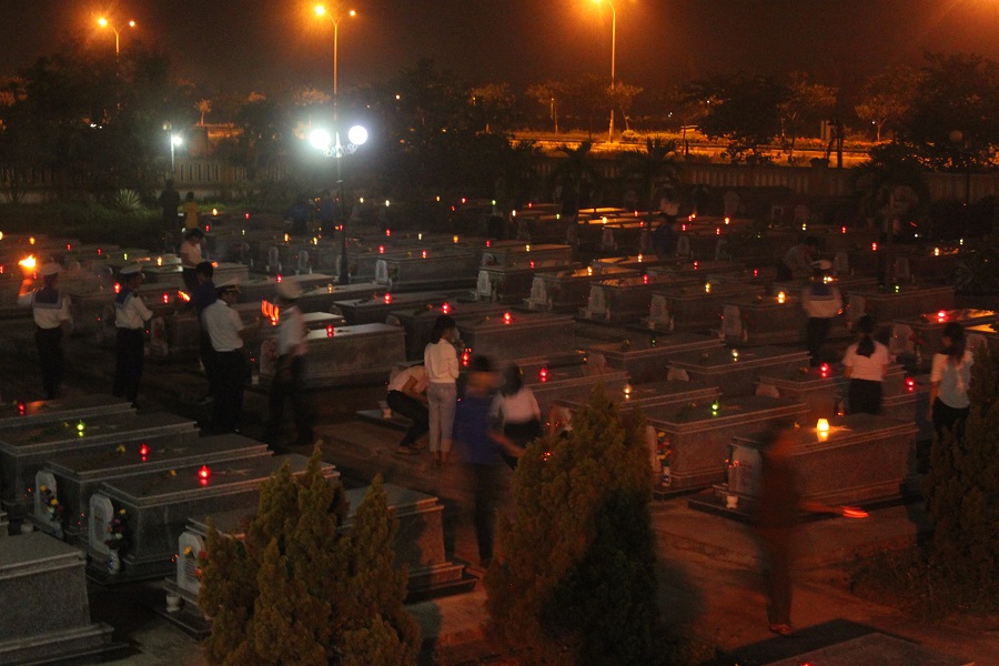 Cán bộ, chiến sĩ Lữ đoàn 680 tham gia Lễ thắp nến tri ân tại Nghĩa trang phường Hòa Quý, quận Ngũ Hành Sơn, TP. Đà Nẵng
