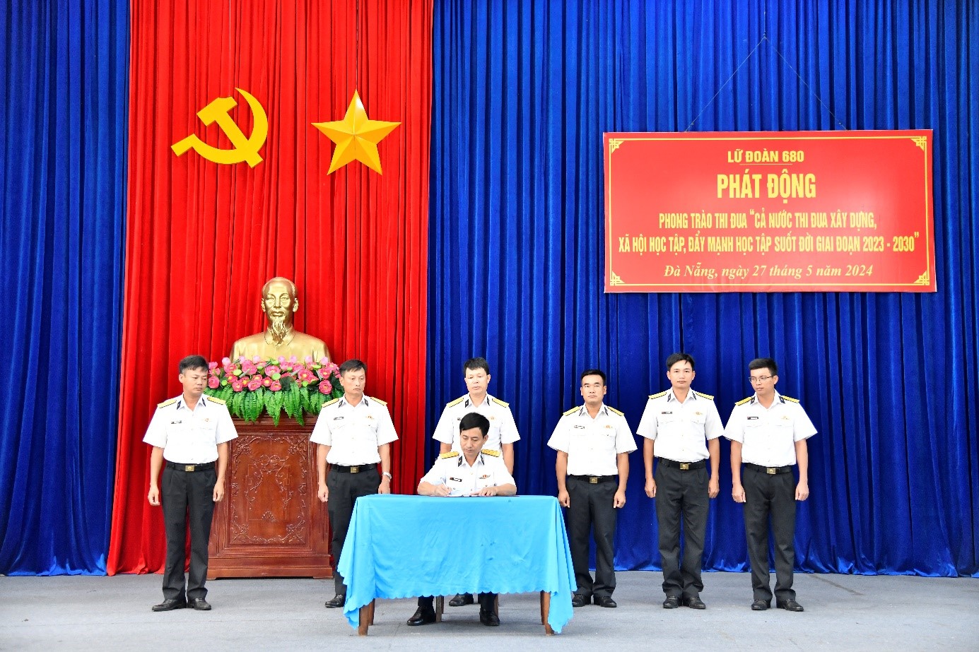 Ngày 27/5, tại TP. Đà Nẵng, Lữ đoàn 680, Vùng 3 Hải quân tổ chức phát động hưởng ứng phong trào “Cả nước thi đua xây dựng xã hội học tập, đẩy mạnh học tập suốt đời giai đoạn 2023-2030”. Thượng tá Nguyễn Thanh Minh, Phó Chính ủy Lữ đoàn chủ trì.