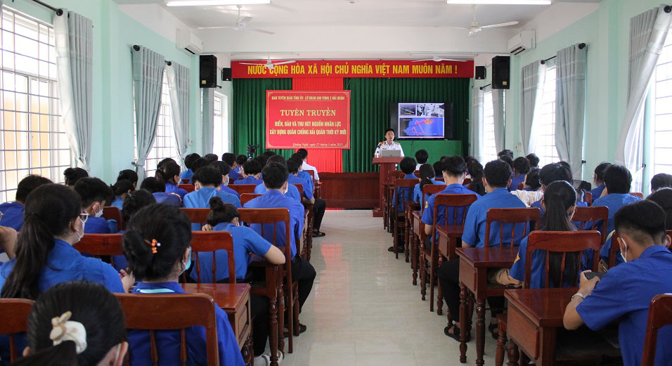 Từ 26 đến 28/3, tại tỉnh Quảng Ngãi, Lữ đoàn 680, Vùng 3 Hải quân tổ chức thông tin về biển đảo và thu hút nguồn nhân lực cho hơn 4.200 học sinh của 3 trường THPT trên địa bàn.