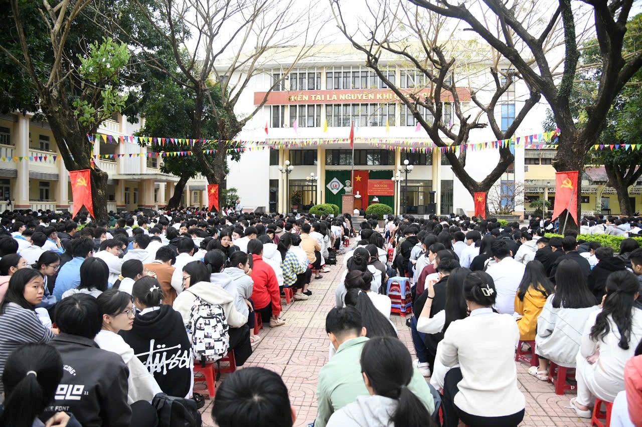 Quang cảnh buổi thông tin tại Trường THPT chuyên Lê Khiết