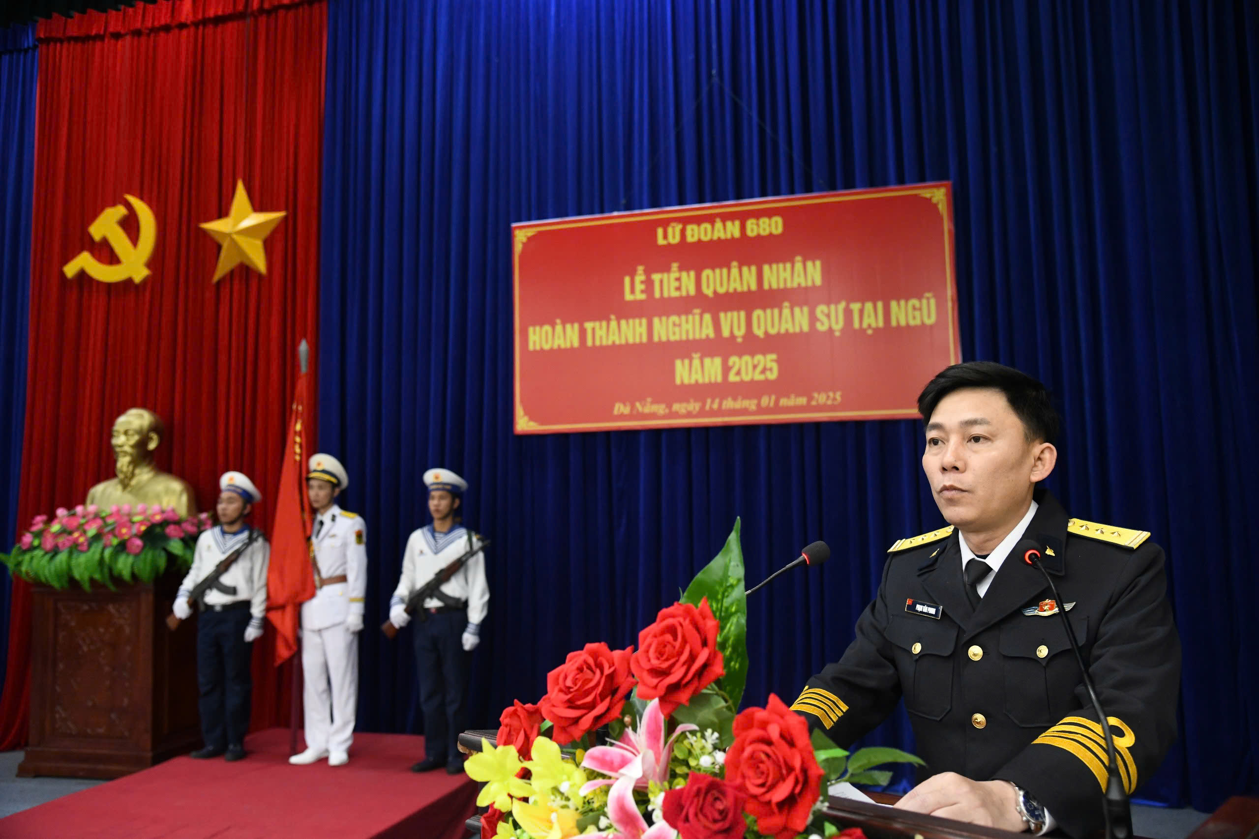Sáng 14/1, tại Đà Nẵng, Lữ đoàn 680, Vùng 3 Hải quân tổ chức Lễ tiễn quân nhân hoàn thành nghĩa vụ quân sự tại ngũ năm 2025. Thượng tá Phạm Văn Phong, Phó Lữ đoàn trưởng, Tham mưu trưởng dự và chỉ đạo.