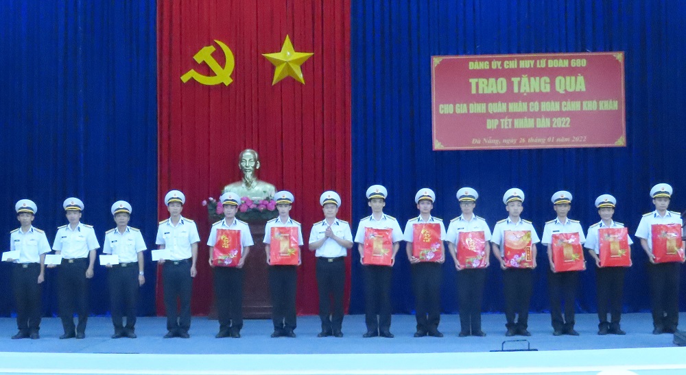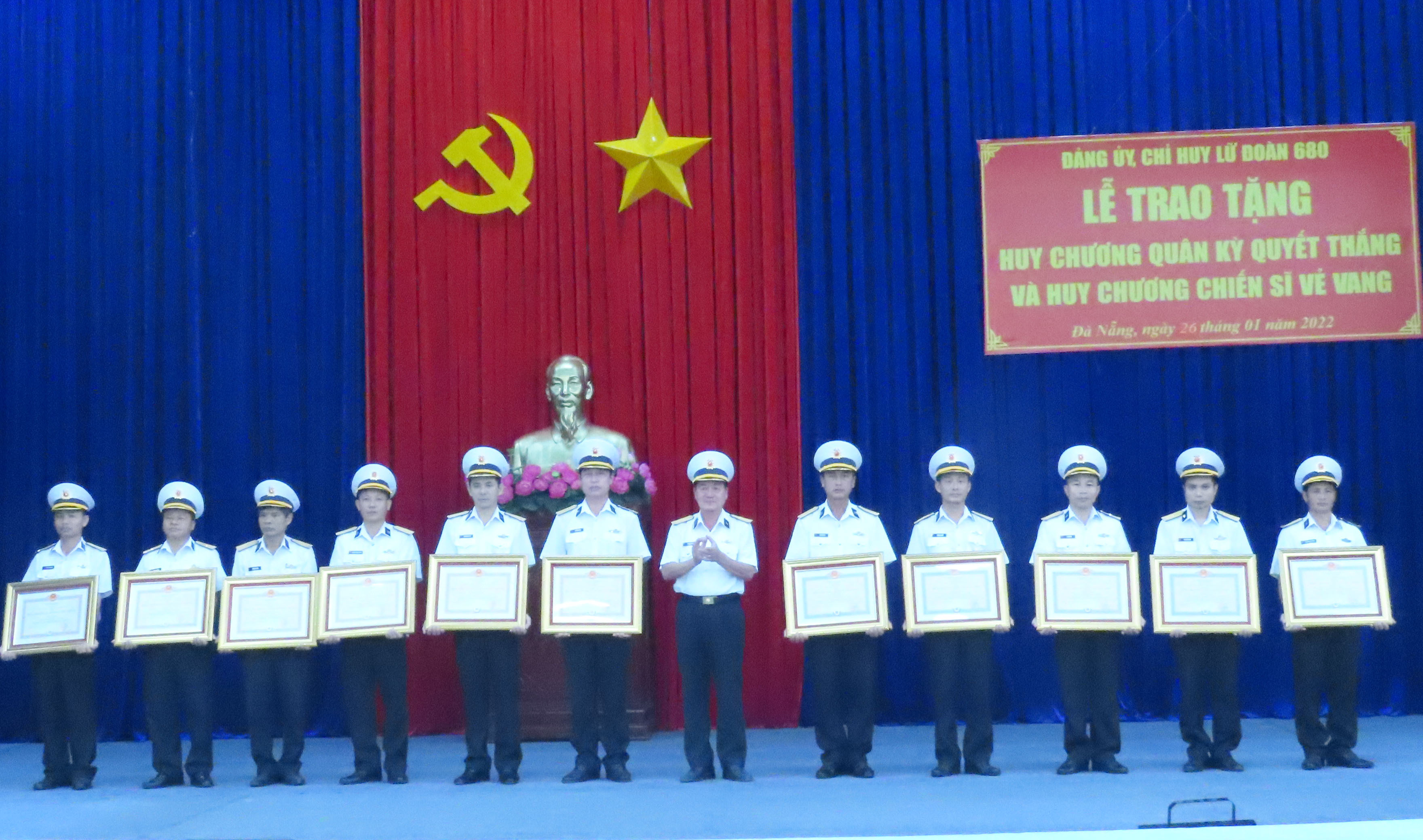 Ngày 26/1, tại Đà Nẵng, Lữ đoàn 680, Vùng 3 Hải quân tổ chức Lễ trao tặng Huy chương Quân kỳ Quyết thắng, Huy chương Chiến sĩ vẻ vang các hạng cho quân nhân và trao tặng quà của Quỹ học bổng Vừ A Dính, quà của Vùng và Lữ đoàn cho gia đình quân nhân có hoàn cảnh khó khăn dịp Tết Nhâm Dần 2022. Đại tá Phạm Văn Toàn, Lữ đoàn trưởng chủ trì.