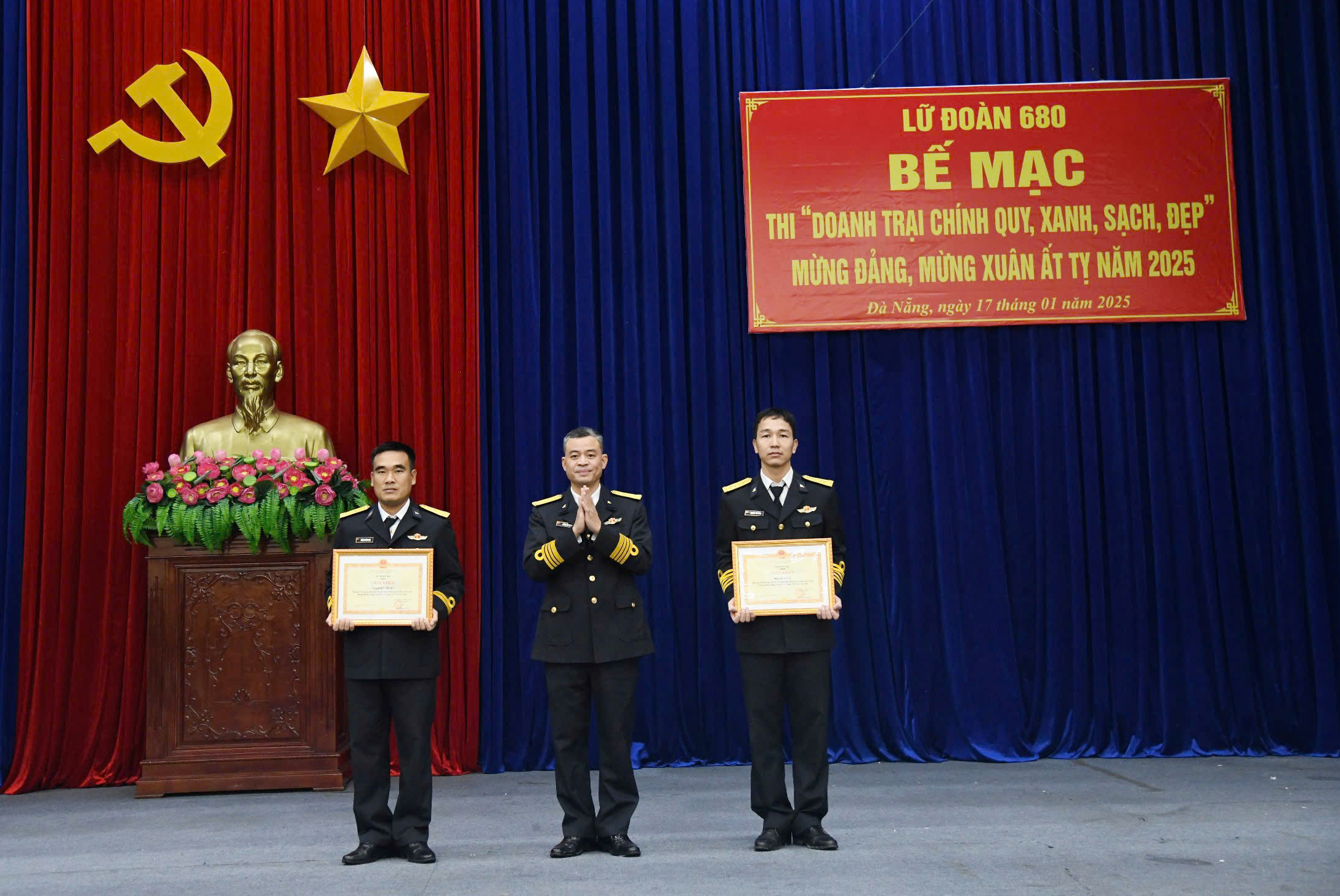 Ngày 17/1 tại Đà Nẵng, Lữ đoàn 680, Vùng 3 Hải quân tổ chức thi "doanh trại chính quy, xanh, sạch, đẹp”. Thượng tá Đồng Văn Trình, Phó Lữ đoàn trưởng dự và chỉ đạo.