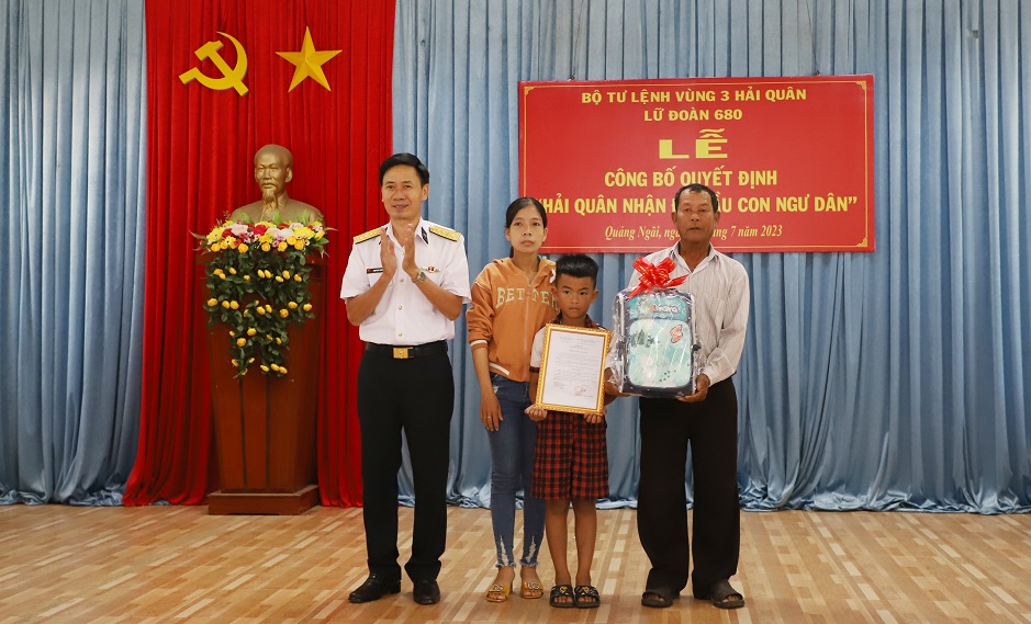 Lữ đoàn 680 trao quyết định “Hải quân nhận đỡ đầu con ngư dân” tại tỉnh Quảng Ngãi