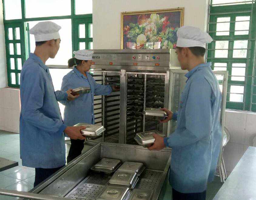 Đưa thức ăn vào tủ hâm nóng phục vụ bộ đội