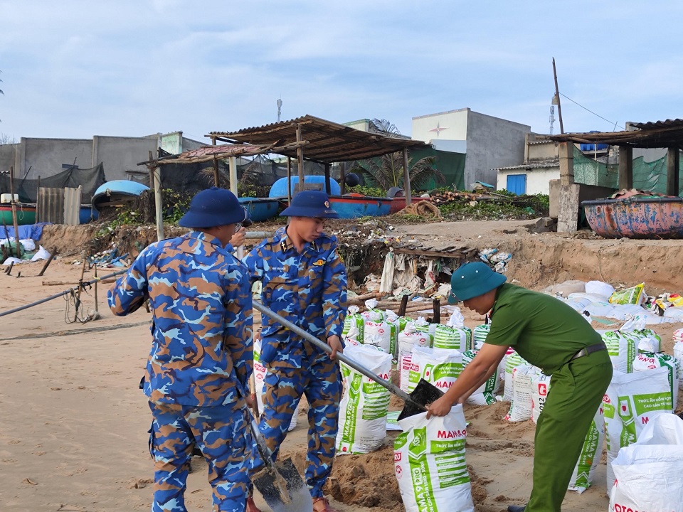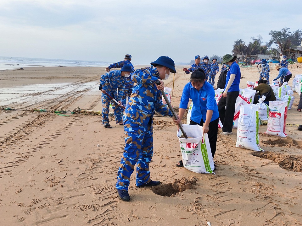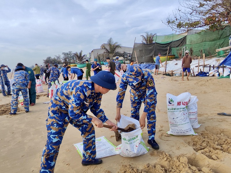 Sáng 13/1, Lữ đoàn 681, Vùng 2 Hải quân đã điều động 30 cán bộ, chiến sĩ phối hợp cùng lực lượng công an, dân quân tự vệ, Bộ đội Biên phòng, đoàn viên thanh niên và nhân dân trên địa bàn xã Tiến Thành đóng hơn 800 bao cát gia cố hơn 150m bờ biển ngăn sóng biển xâm thực.