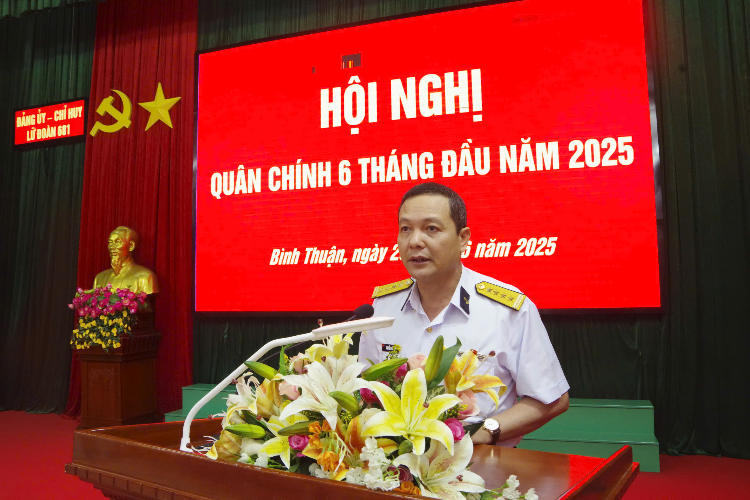 Chiều 20/6, tại TP. Phan Thiết, tỉnh Bình Thuận, Lữ đoàn 681, Vùng 2 Hải quân tổ chức Hội nghị quân chính 6 tháng đầu năm 2025. Đại tá Nguyễn Văn Quán, Tư lệnh Vùng dự và chỉ đạo; Thượng tá Nguyễn Văn Tuấn, Lữ đoàn trưởng chủ trì.