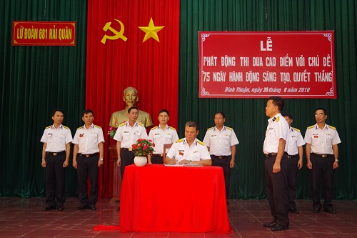 Ngày 30-9, tại TP. Phan Thiết, tỉnh Bình Thuận, Lữ đoàn 681, Vùng 2 Hải quân tổ chức phát động thi đua cao điểm chào mừng kỷ niệm 30 năm Ngày hội Quốc phòng toàn dân (22-12-1989 – 22-12-2019) và 75 năm Ngày thành lập Quân đội nhân dân Việt Nam (22-12-1944 – 22-12-2019) với chủ đề “75 ngày hành động sáng tạo, quyết thắng”.