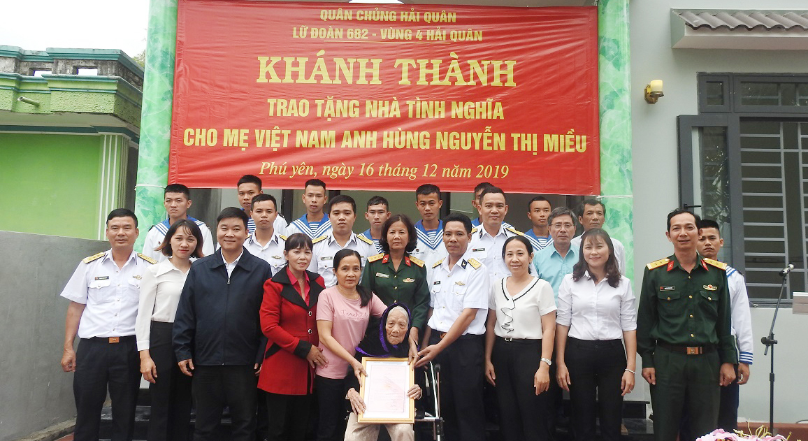 Chiều 16-12, tại xã Bình Kiến, TP. Tuy Hòa, tỉnh Phú Yên, Lữ đoàn 682, Vùng 4 Hải quân phối hợp với chính quyền địa phương tổ chức bàn giao Nhà tình nghĩa cho Mẹ Việt Nam anh hùng Nguyễn Thị Miều. Mẹ Nguyễn Thị Miều năm nay 98 tuổi, hiện đang sinh sống cùng con trai tại thôn Thượng Phú, xã Bình Kiến, TP Tuy Hòa, tỉnh Phú Yên.