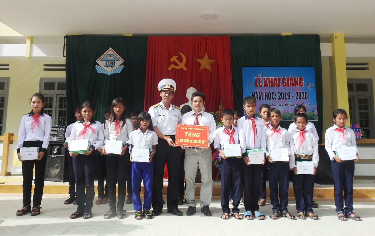Nhân dịp năm học mới 2019-2020, cán bộ, chiến sĩ Lữ đoàn đã quyên góp, ủng hộ chương trình “Nâng bước em đến trường”, tặng các em học sinh Trường tiểu học và THCS Ea Lâm 1.200 cuốn vở, hơn 300 cây bút (trị giá gần 10 triệu đồng).