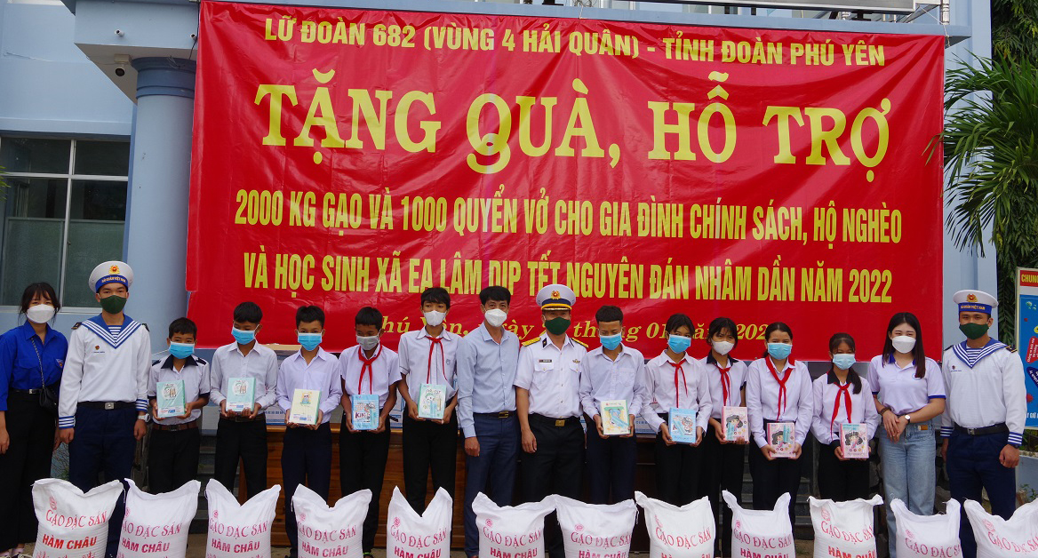 Ngày 22/1, Lữ đoàn 682, Vùng 4 Hải quân phối hợp với Tỉnh đoàn Phú Yên tổ chức thăm, tặng quà các hộ gia đình chính sách, gia đình có hoàn cảnh khó khăn, các cháu học sinh vượt khó trên địa bàn xã Ea Lâm, huyện Sông Hinh, tỉnh Phú Yên.