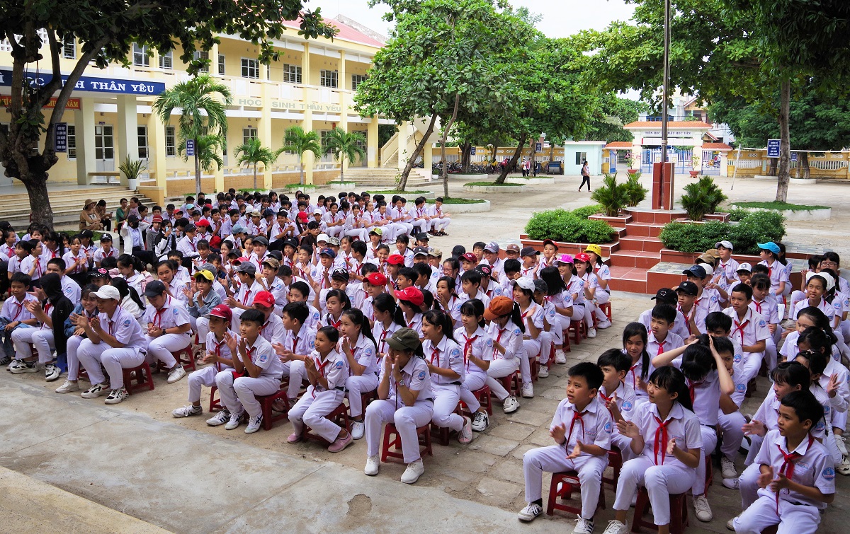 Học sinh Trường THCS Nguyễn Hữu Thọ nghe thông tin về biển, đảo