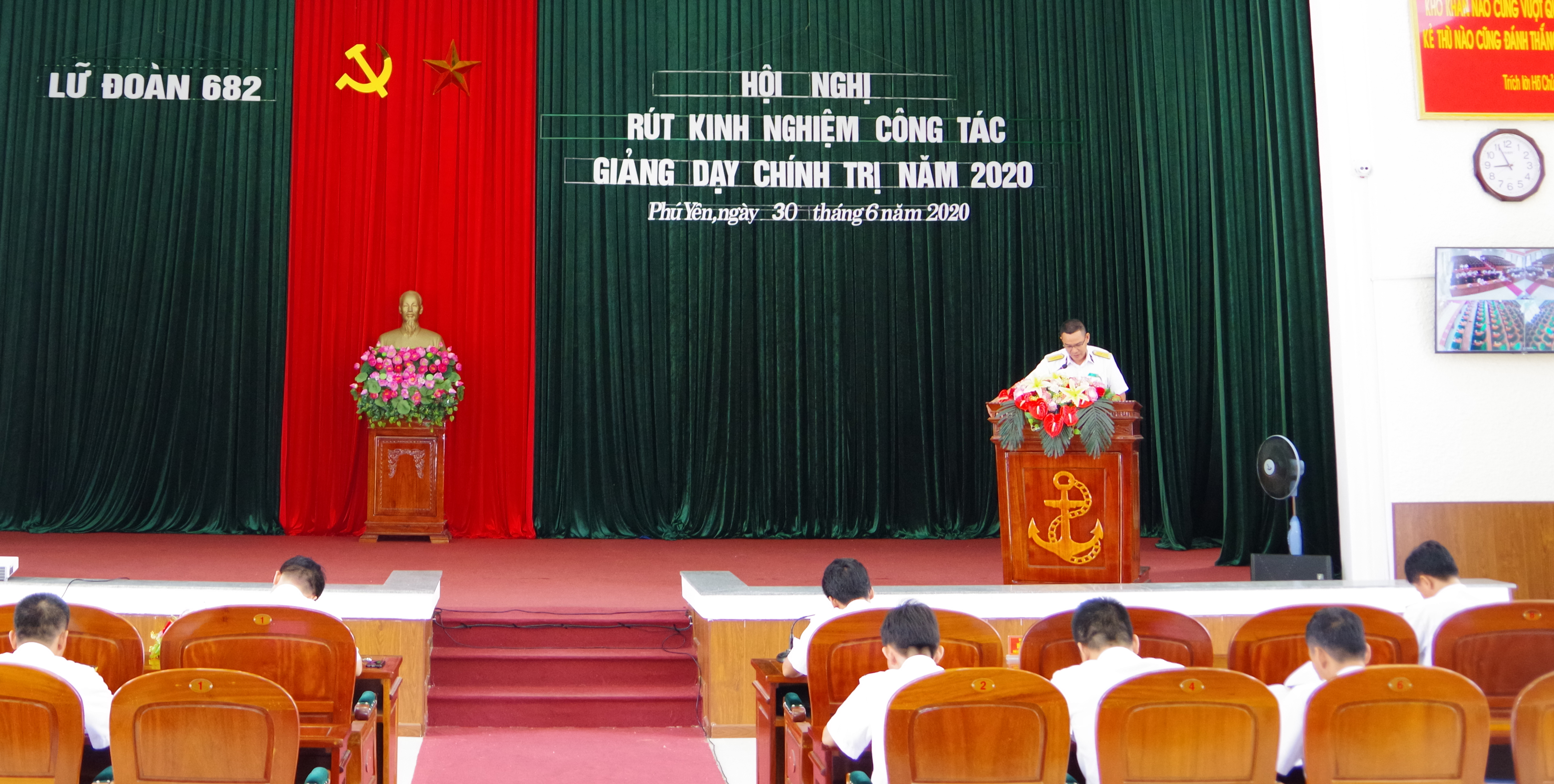 Sáng 30-6, tại TP. Tuy Hòa, tỉnh Phú Yên, Lữ đoàn 682, Vùng 4 Hải quân tổ chức Hội nghị rút kinh nghiệm công tác giảng dạy chính trị năm 2020. Thượng tá Phạm Văn Kết, Phó Chính ủy Lữ đoàn chủ trì.