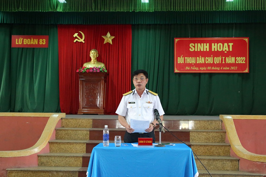 Chiều 8/4, tại Đà Nẵng, Lữ đoàn Công binh 83 Hải quân tổ chức đối thoại dân chủ với Khung huấn luyện chiến sĩ mới (CSM) Quý I/2022. Đại tá Lã Ngọc Tuân, Bí thư Đảng ủy, Chính ủy Lữ đoàn chủ trì.