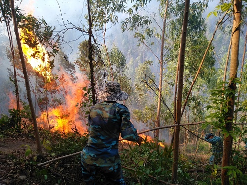 60 cán bộ, chiến sĩ cùng phương tiện, trang bị của Lữ đoàn đã khẩn trương chữa cháy. Đám cháy lớn bùng phát trên đỉnh núi, đường dốc thẳng đứng gây khó khăn cho bộ đội, lực lượng phòng cháy, chữa cháy triển khai phương tiện dập lửa. Các xe cứu hỏa, phương tiện cơ giới không tiếp cận được đám cháy do gió thổi mạnh, lửa lan nhanh nên hầu như các lực lượng phải chữa cháy bằng phương pháp thủ công.