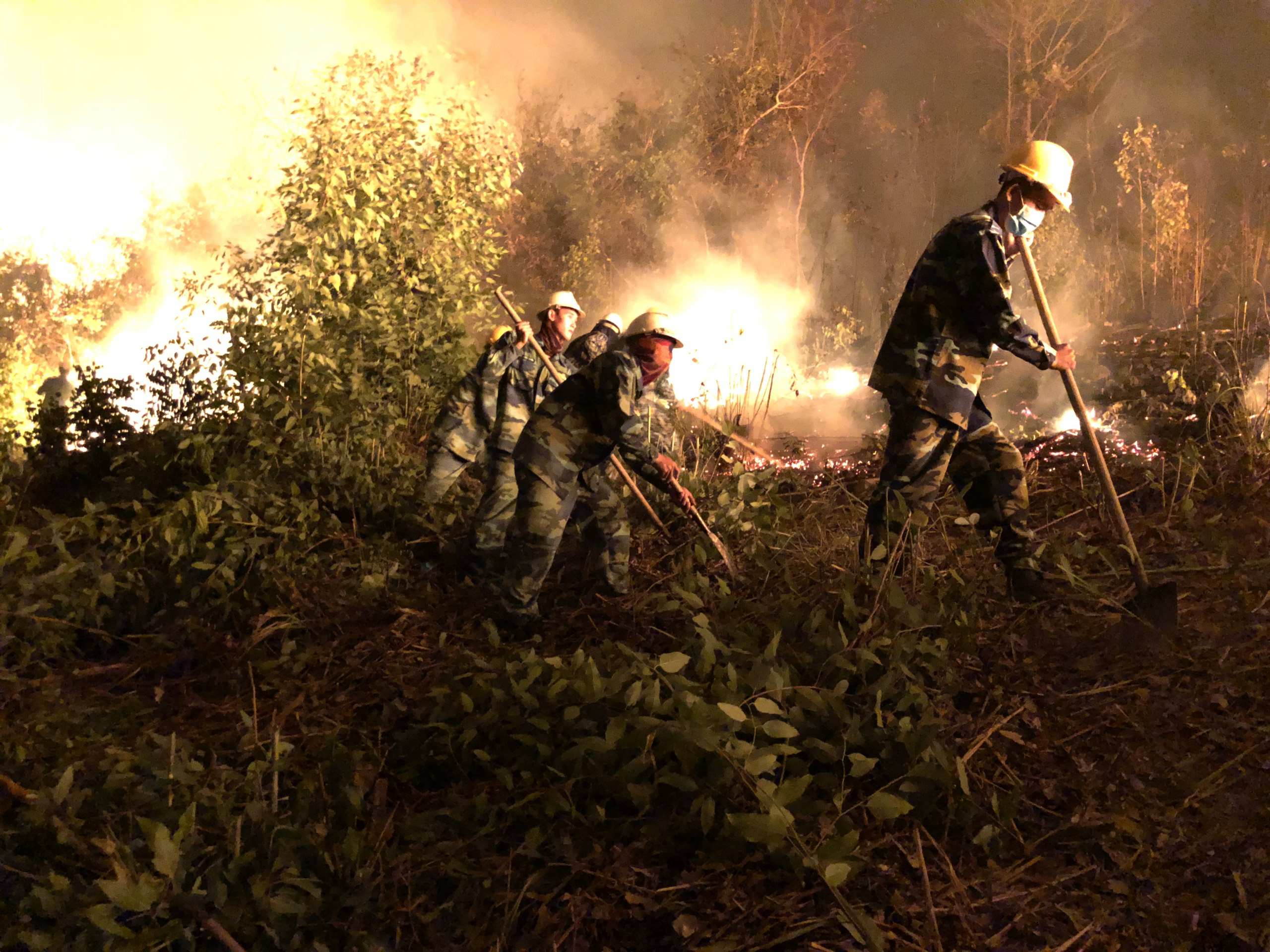 Mặc dù đám cháy nằm ở địa hình núi cao, dốc đứng, cùng với gió thổi mạnh làm cho đám cháy lan nhanh, lửa bốc cao nhưng cán bộ, chiến sĩ Lữ đoàn 83 cùng các lực lượng đã khẩn trương khoanh vùng, phát biên chống cháy.
