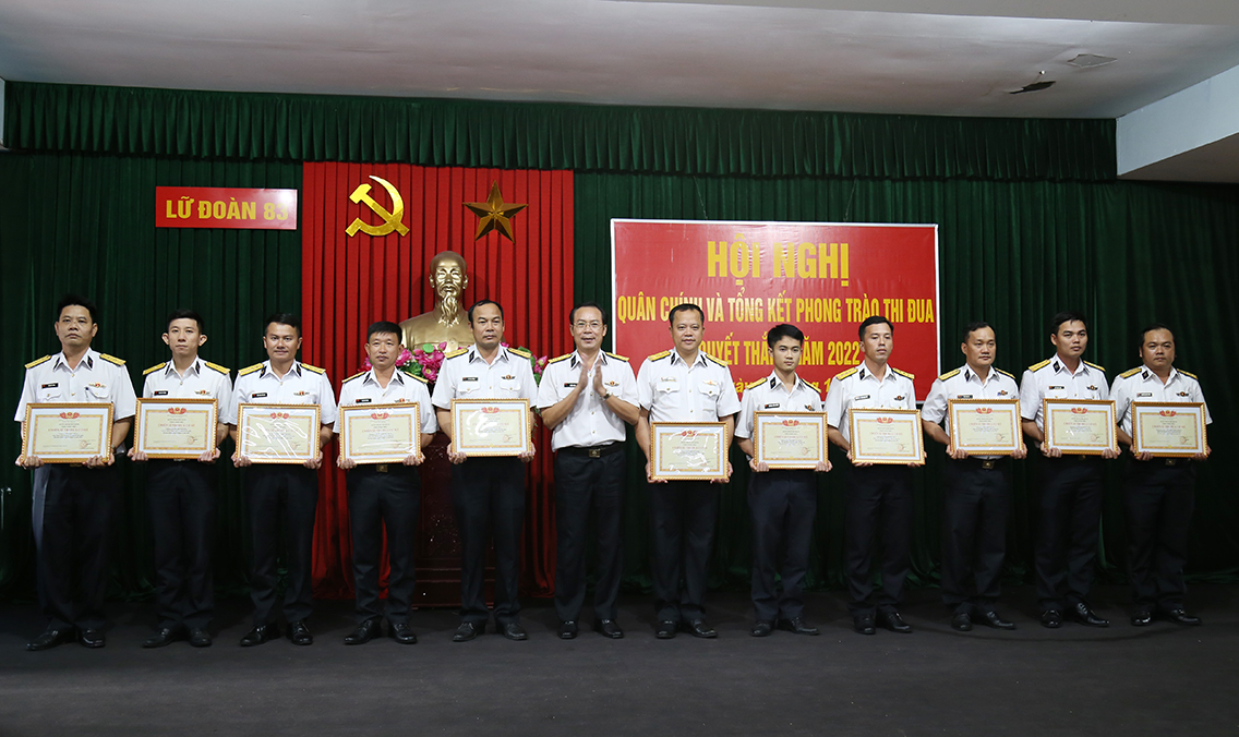 Tổng kết phong trào thi đua quyết thắng năm 2022, Lữ đoàn có 2 tập thể và 7 cá nhân được Bộ Quốc phòng tặng Bằng khen; Quân chủng Hải quân công nhận danh hiệu “Đơn vị 3 tiêu biểu” cho 3 tập thể, tặng danh hiệu “Đơn vị Quyết thắng” cho 5 tập thể, tặng danh hiệu "Chiến sĩ thi đua cấp cơ sở" cho 44 đồng chí và danh hiệu "Chiến sĩ tiên tiến cho 13 đồng chí.