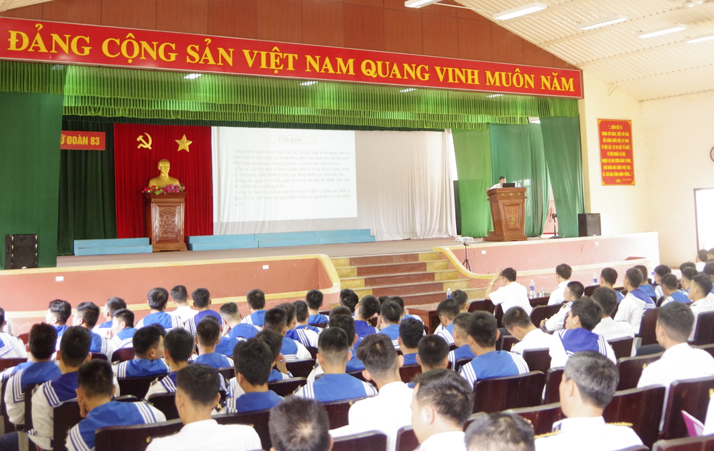 Ngày 18-11, tại TP. Đà Nẵng, Lữ đoàn Công binh 83 Hải quân phối hợp với Tòa án Quân sự Quân chủng Hải quân; Viện kiểm sát quân sự khu vực 1; Phòng Thi hành án; Cơ quan điều tra hình sự khu vực 2 tổ chức giáo dục pháp luật năm 2020 cho gần 450 sĩ quan, quân nhân chuyên nghiệp, hạ sĩ quan-binh sĩ.