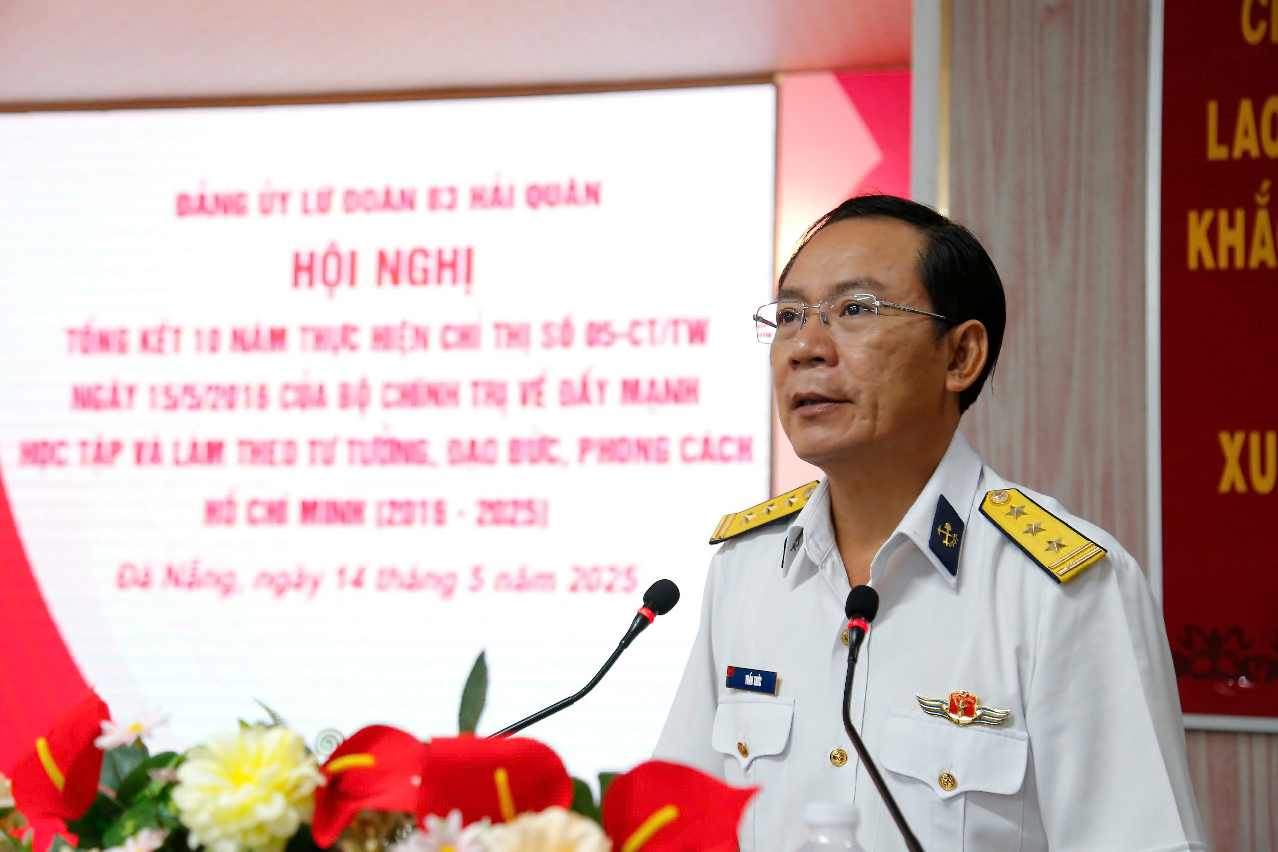 Ngày 14/5, tại Đà Nẵng, Lữ đoàn Công binh 83 Hải quân tổ chức Hội nghị tổng kết 10 năm thực hiện Chỉ thị số 05-CT/TW ngày 15/5/2016 của Bộ Chính trị về đẩy mạnh học tập và làm theo tư tưởng, đạo đức, phong cách Hồ Chí Minh (2016-2025). Thượng tá Trần Thức, Bí thư Đảng ủy, Chính ủy Lữ đoàn 83 chủ trì.