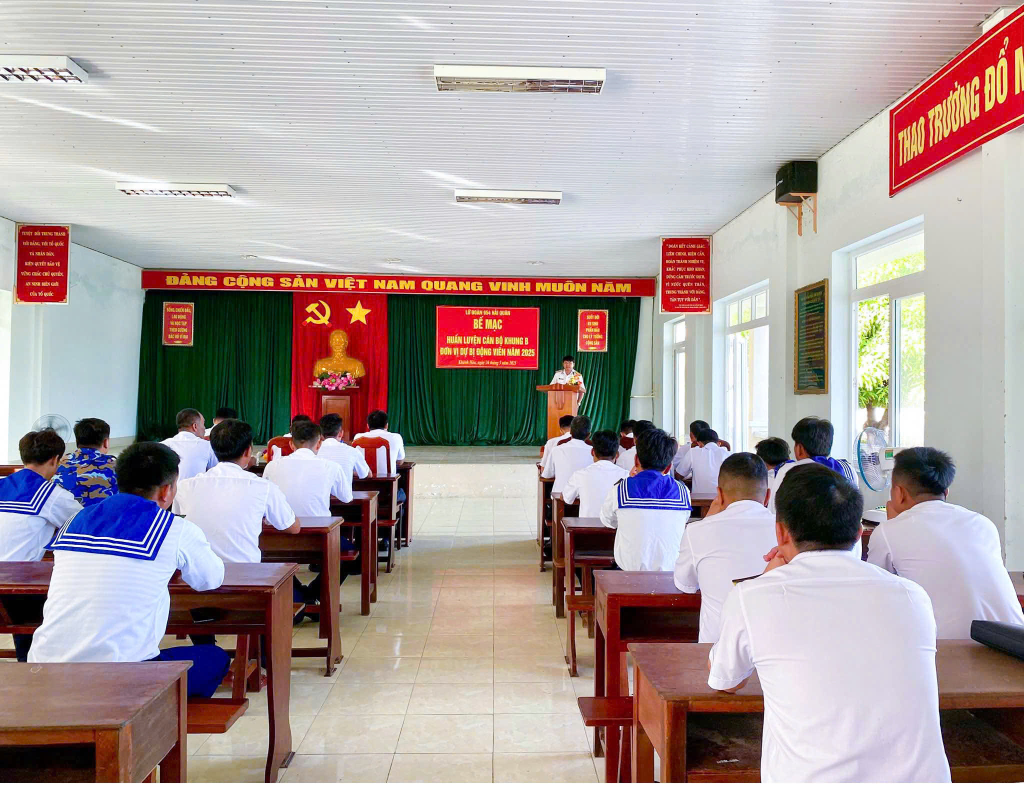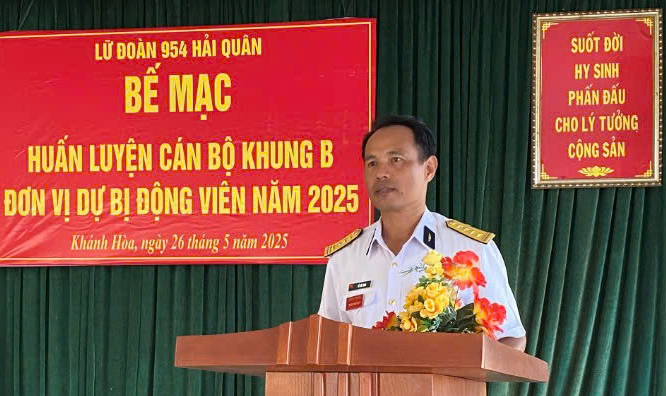 Sáng 26/5, tại TP.Cam Ranh, tỉnh Khánh Hoà, Lữ đoàn 954 Hải quân tổ chức bế mạc lớp huấn luyện cán bộ khung B cho 26 cán bộ, chiến sĩ đơn vị dự bị động viên (DBĐV) năm 2025. Đại tá Vũ Hải Nam, Phó Lữ đoàn trưởng, Tham mưu trưởng chủ trì.