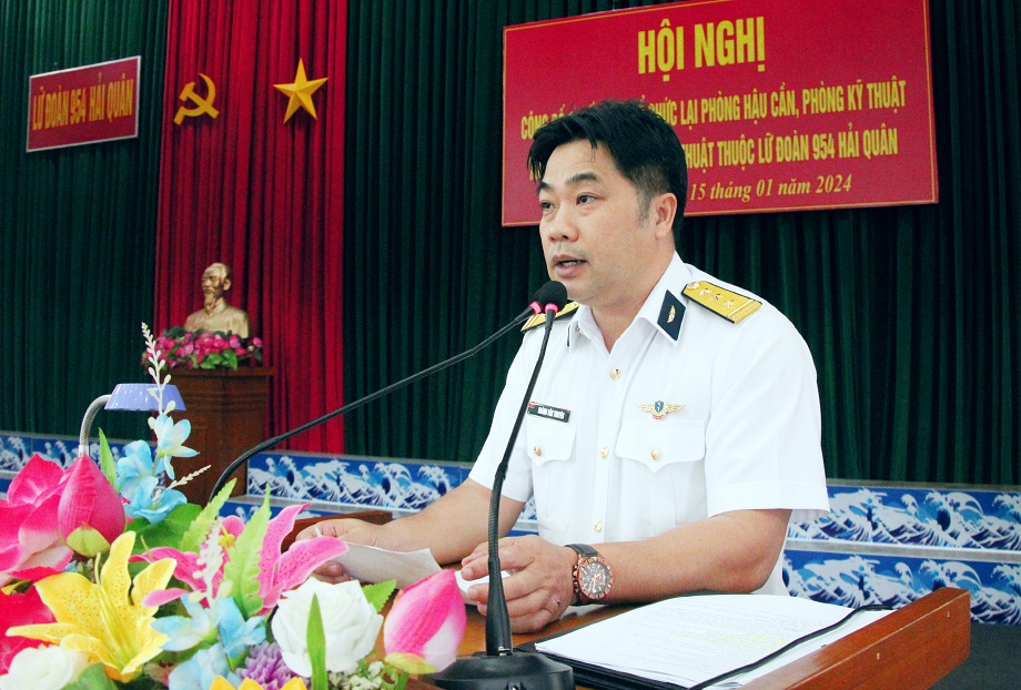 Sáng 15/1, tại TP. Cam Ranh, tỉnh Khánh Hòa, Lữ đoàn 954 Hải quân tổ chức Hội nghị công bố quyết định tổ chức lại Phòng Hậu cần, Phòng Kỹ thuật thành Phòng Hậu cần – Kỹ thuật. Thượng tá Hoàng Văn Thuyên, Chính ủy Lữ đoàn chủ trì.