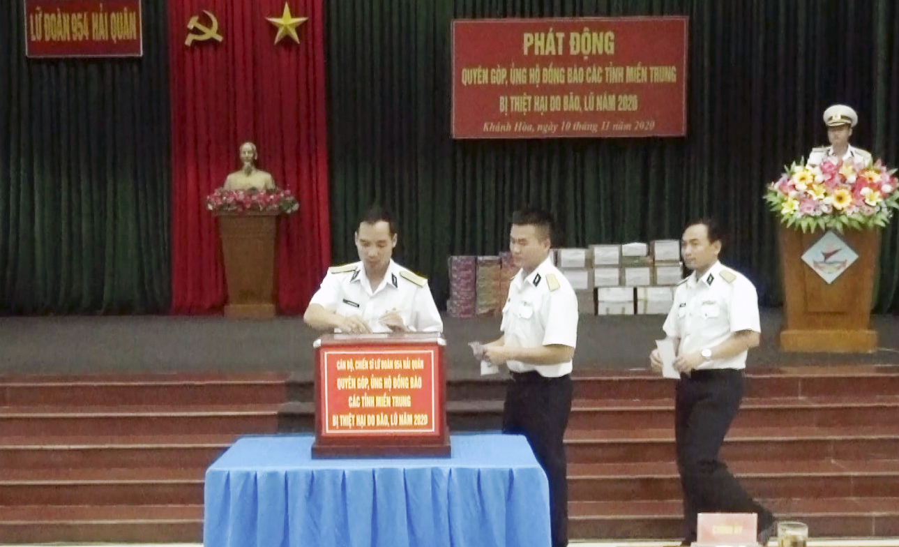 Cùng với cả nước hướng về “khúc ruột” miền Trung, ngày 10-11, cán bộ, chiến sĩ Lữ đoàn 954 đã phát động quyên góp, ủng hộ đồng bào các tỉnh bị ảnh hưởng bởi bão, lũ, lụt.