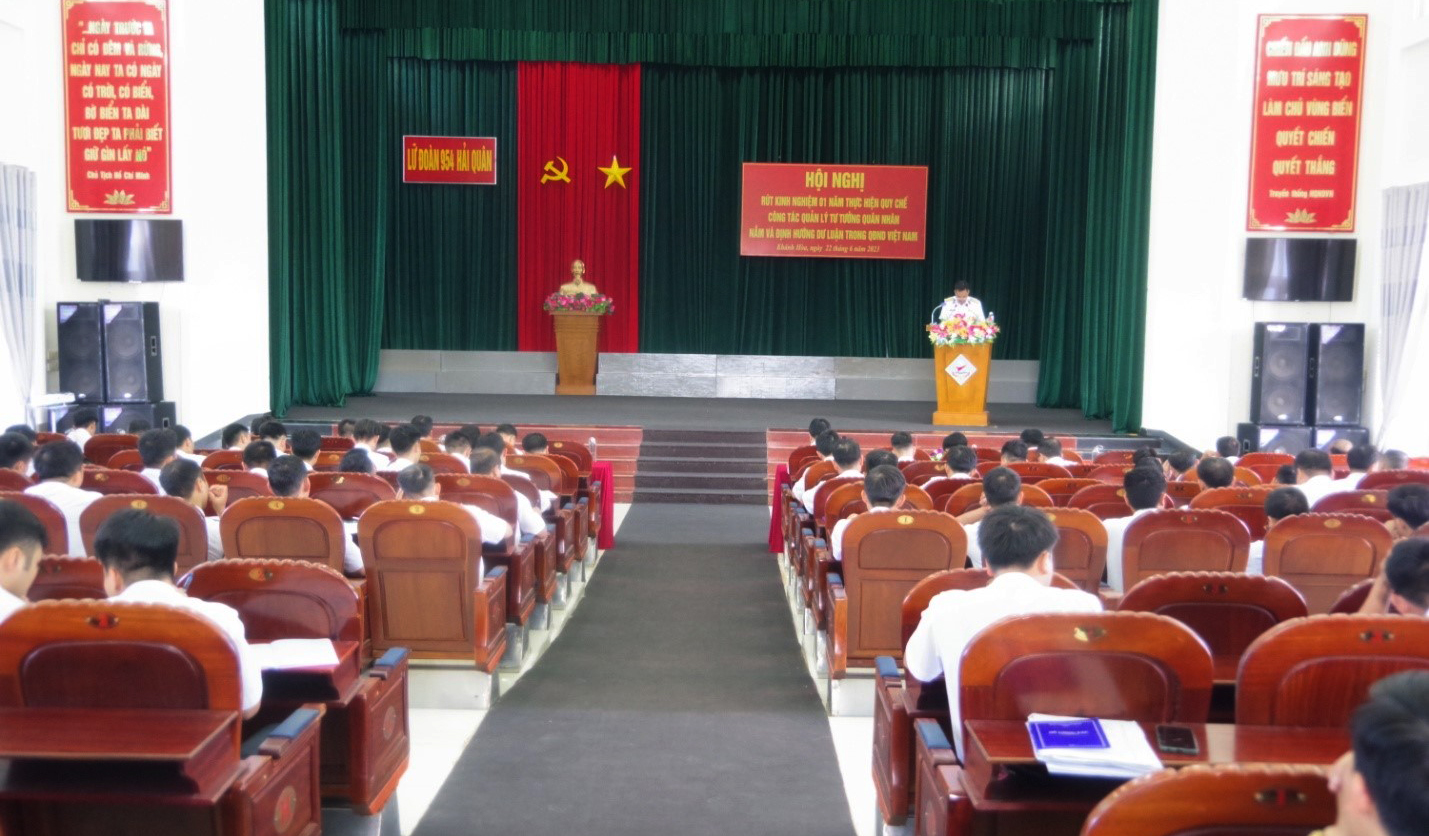 Chiều 22/6, tại TP. Cam Ranh, tỉnh Khánh Hòa, Lữ đoàn 954 Hải quân tổ chức Hội nghị sơ kết, rút kinh nghiệm 1 năm thực hiện Quy chế công tác quản lý tư tưởng quân nhân, nắm và định hướng dư luận trong quân đội (Quy chế số 775). Trung tá Hoàng Văn Thuyên, Bí thư Đảng ủy, Chính ủy Lữ đoàn chủ trì.