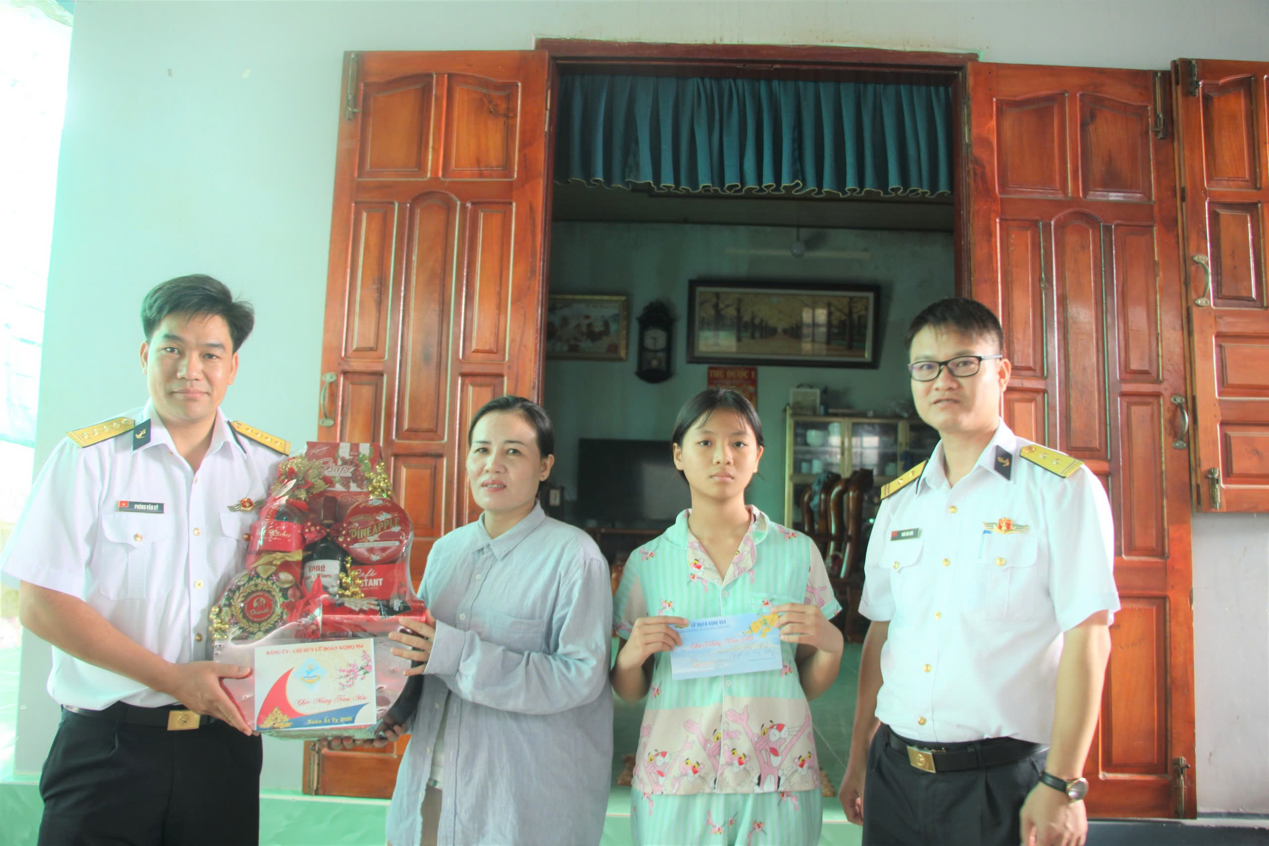 Đoàn đã đến thăm, chúc tết, tặng quà gia đình liệt sĩ, Anh hùng lực lượng vũ trang nhân dân Đặng Văn Thanh (xã Cà Ná, huyện Thuận Nam) và gia đình các cháu Nguyễn Thị Thùy Dương và Trần Hoàng Phúc An (phường Mỹ Đông, TP. Phan Rang - Tháp Chàm), là con ngư dân có hoàn cảnh đặc biệt khó khăn được Lữ đoàn 954 nhận đỡ đầu.
