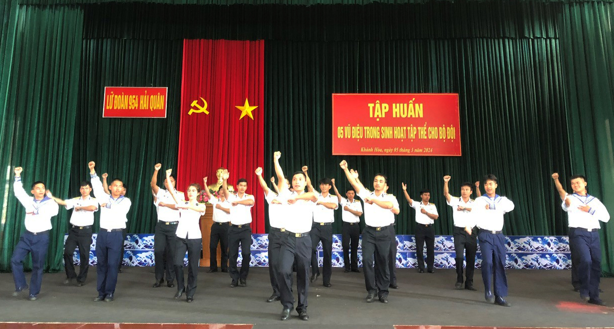 Ngày 5 và 6/3, tại TP. Cam Ranh, tỉnh Khánh Hoà, Lữ đoàn 954 Hải quân tổ chức tập huấn các vũ điệu tập thể cho bộ đội năm 2024. Đại tá Nguyễn Huy Bắc, Phó Chính uỷ Lữ đoàn dự và chỉ đạo.
