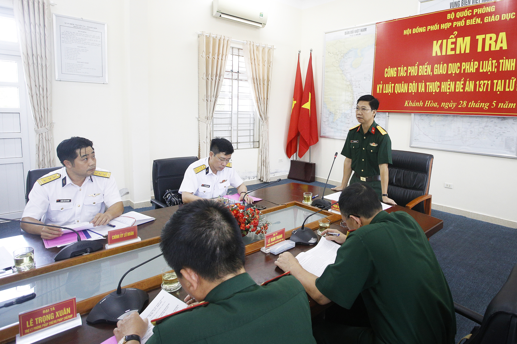 Chiều 28/5, tại TP. Cam Ranh, tỉnh Khánh Hòa, Hội đồng phối hợp phổ biến, giáo dục pháp luật Bộ Quốc phòng do Đại tá Phạm Đức Hoài, Phó Vụ trưởng Vụ Pháp chế, Bộ Quốc phòng làm trưởng đoàn đã đến kiểm tra công tác phổ biến giáo dục pháp luật; tình hình chấp hành kỷ luật Quân đội và thực hiện Đề án phát huy vai trò của lực lượng Quân đội nhân dân Việt Nam tham gia công tác phổ biến, giáo dục pháp luật (PBGDPL), vận động nhân dân chấp hành pháp luật tại cơ sở giai đoạn 2021-2027 (Đề án 1371) tại Lữ đoàn Không quân Hải quân 954.