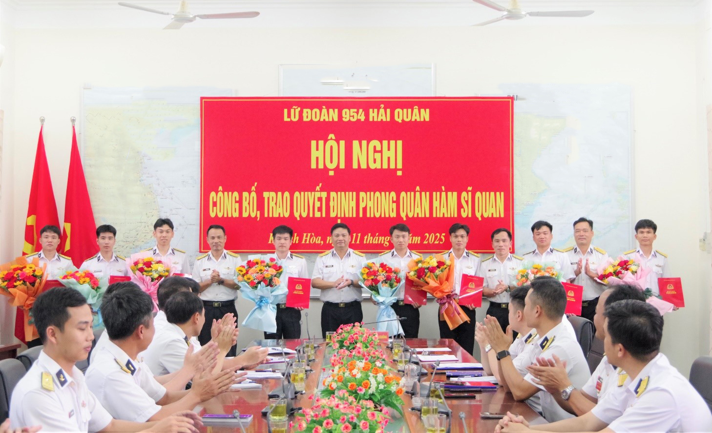 Chiều 11/3, tại TP.Cam Ranh, tỉnh Khánh Hoà, Lữ đoàn 954 Hải quân thừa ủy quyền của thủ trưởng Bộ Tư lệnh Hải quân công bố, trao quyết định phong quân hàm cho 8 học viên tốt nghiệp phi công thuỷ phi cơ DHC-6 khóa 1. Đại tá Vương Đăng Nam, Lữ đoàn trưởng dự và chủ trì.