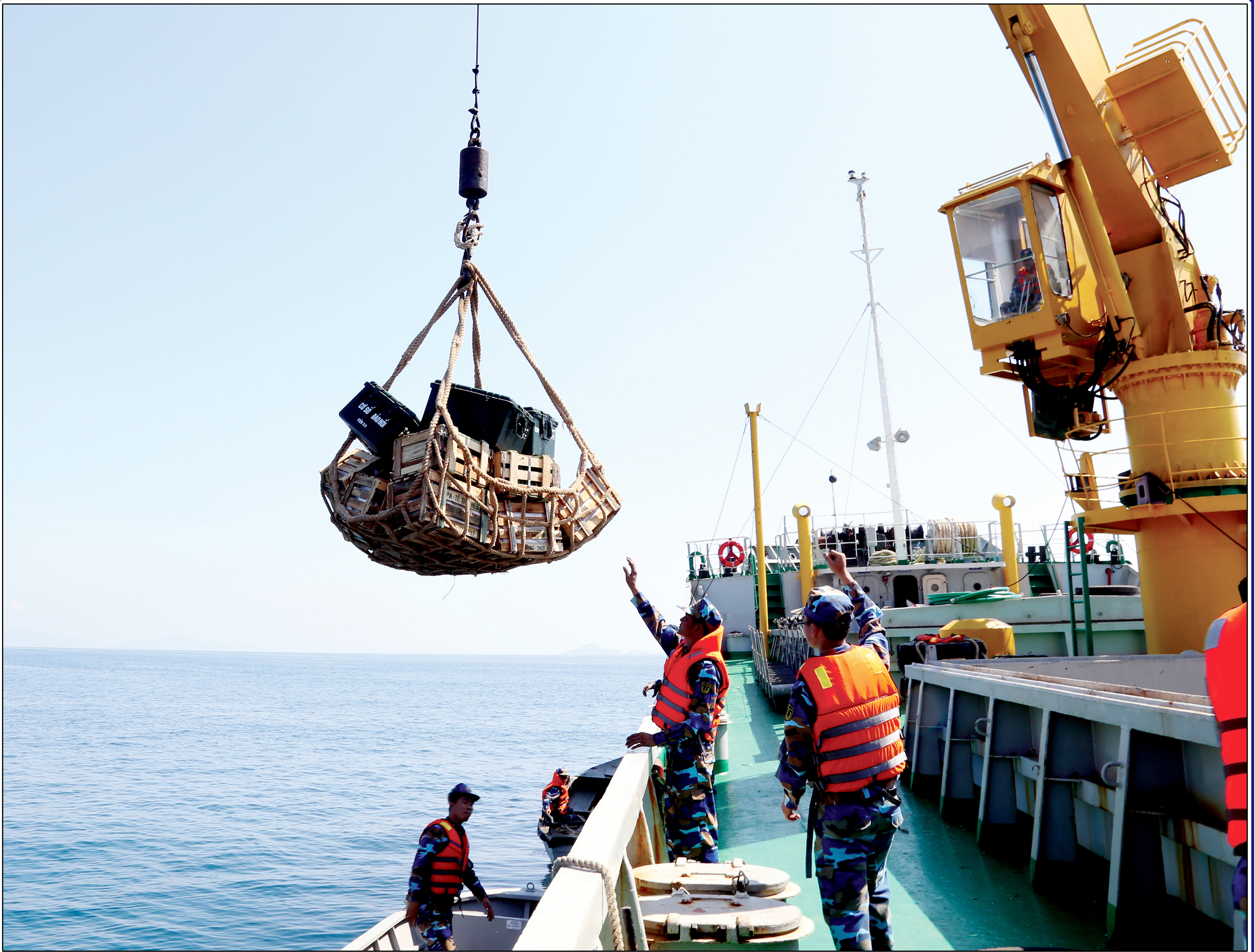 Tàu của Lữ đoàn 955 vận tải hàng hóa, vật tư bảo đảm hậu cần cho các lực lượng làm nhiệm vụ trên biển