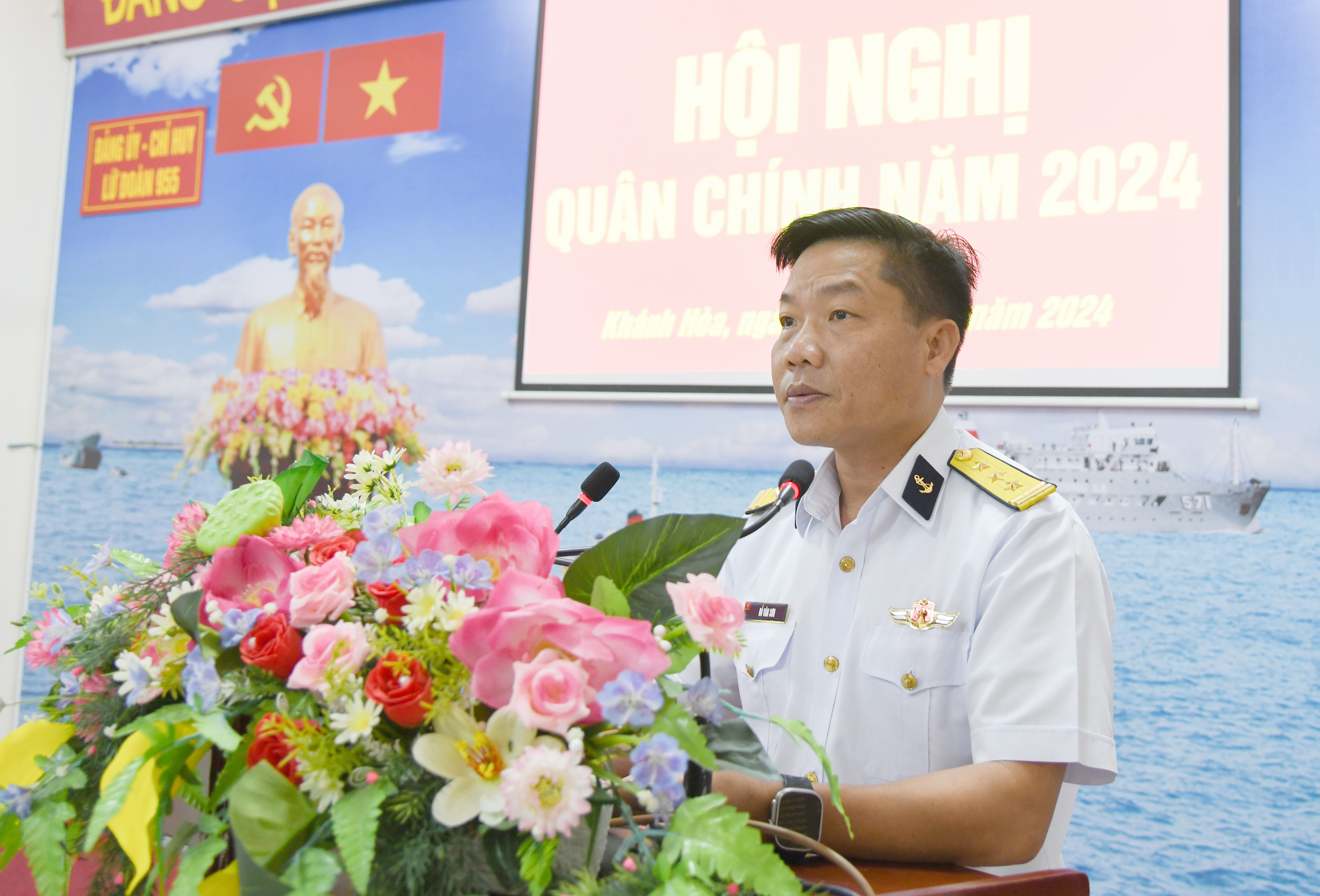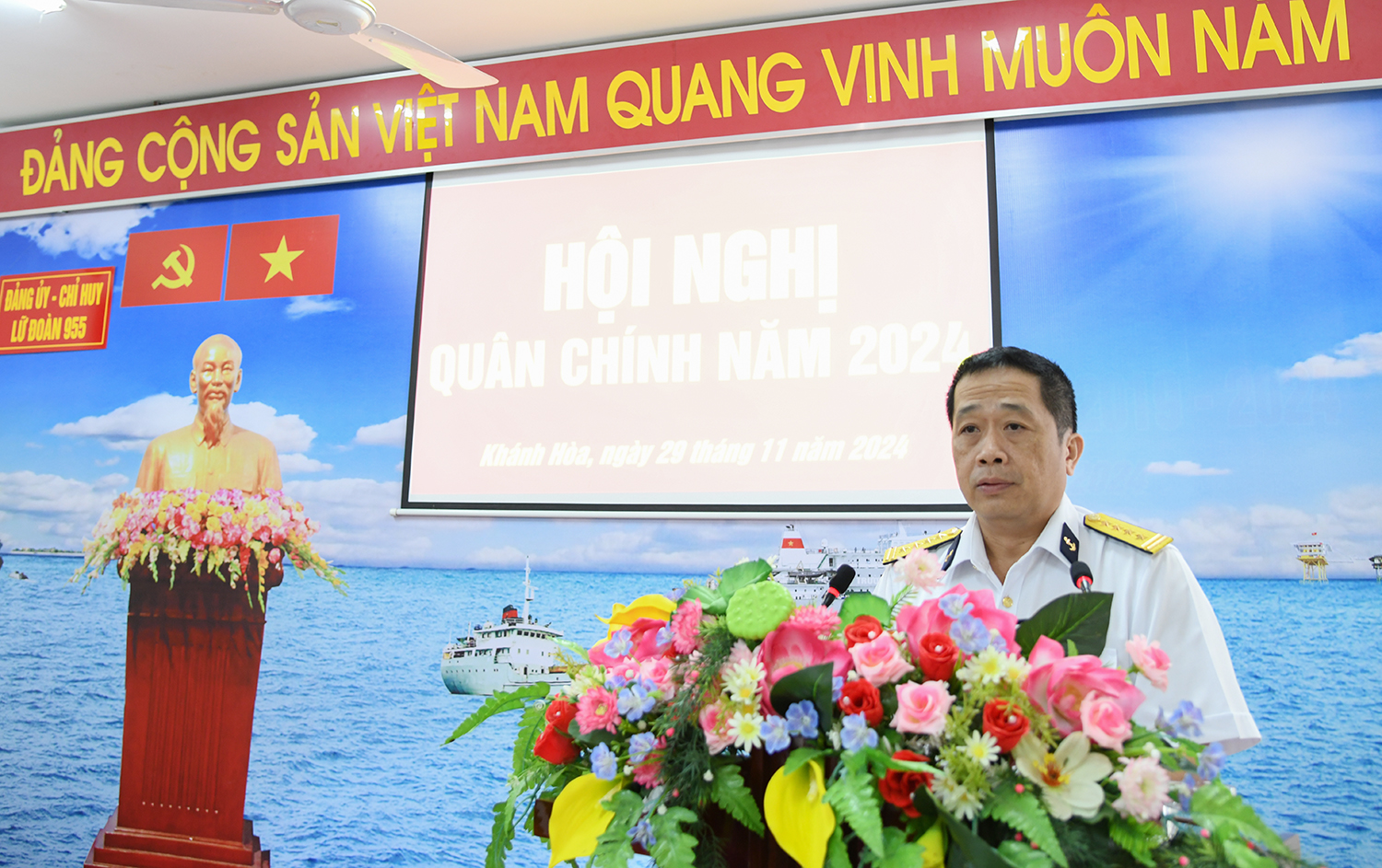 Sáng 29/11, tại TP. Cam Ranh, tỉnh Khánh Hòa, Lữ đoàn 955, Vùng 4 Hải quân tổ chức Hội nghị Quân chính năm 2024. Đại tá Nguyễn Vĩnh Nam, Phó Tư lệnh Vùng dự và chỉ đạo.