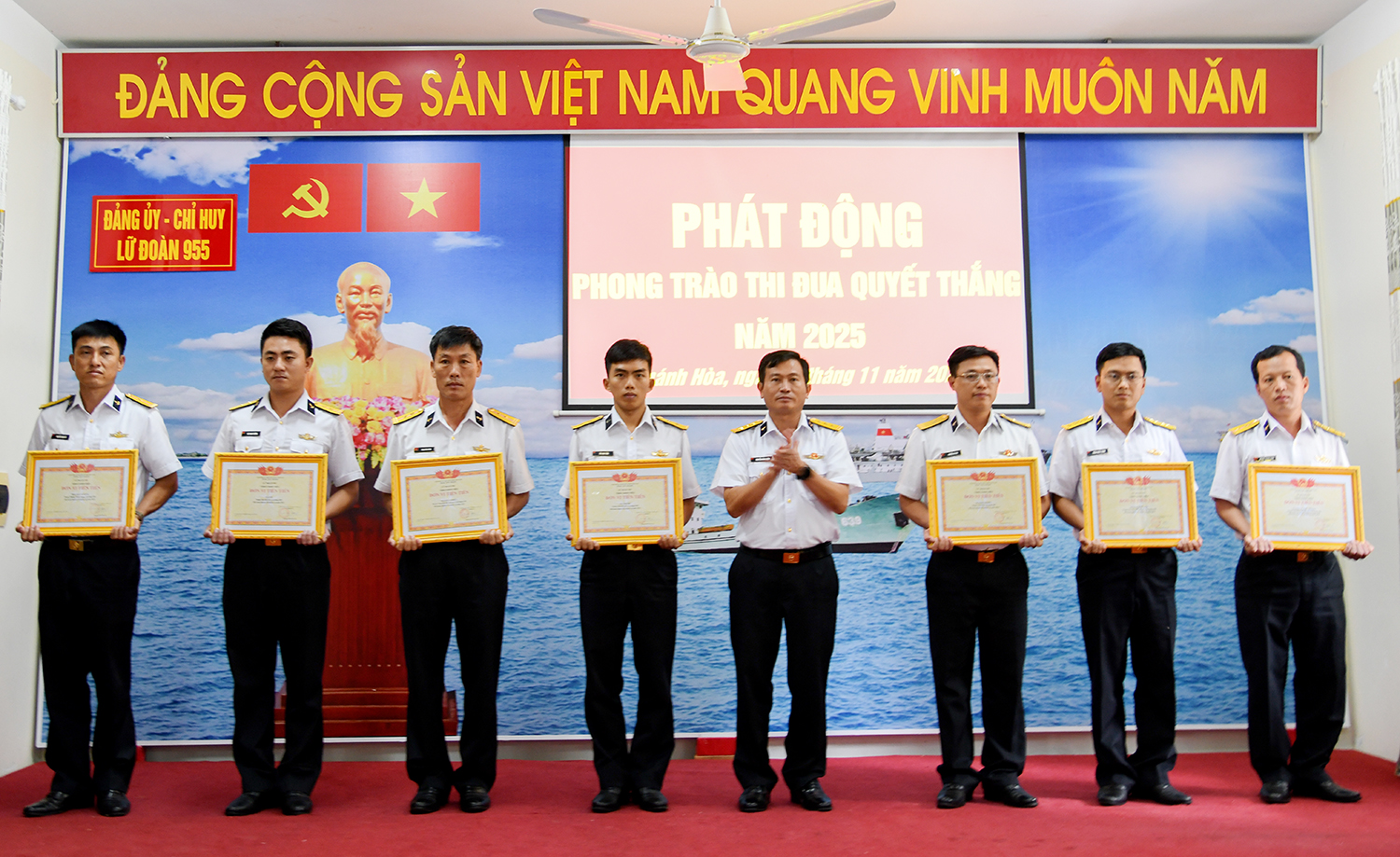 Năm 2024, Lữ đoàn 955 đã giành 1 giải Nhất, 1 giải Ba tại Hội thi báo cáo viên giỏi cấp Vùng; 1 giải Nhì, 2 giải Khuyến khích tại Hội thi thuyền trưởng, chính trị viên tàu giỏi cấp Quân chủng; 1 giải Ba, 1 giải Khuyến khích trong Hội thi bí thư chi bộ giỏi cấp Vùng. 15 tập thể và 33 cá nhân được khen thưởng trong các đợt thi đua cao điểm; 7 tập thể đạt danh hiệu “Đơn vị quyết thắng”; 22 tập thể đạt danh hiệu “Đơn vị tiên tiến”; 54 cá nhân đạt danh hiệu “Chiến sĩ thi đua cấp cơ sở” và 106 cá nhân đạt danh hiệu “Chiến sĩ tiên tiến”