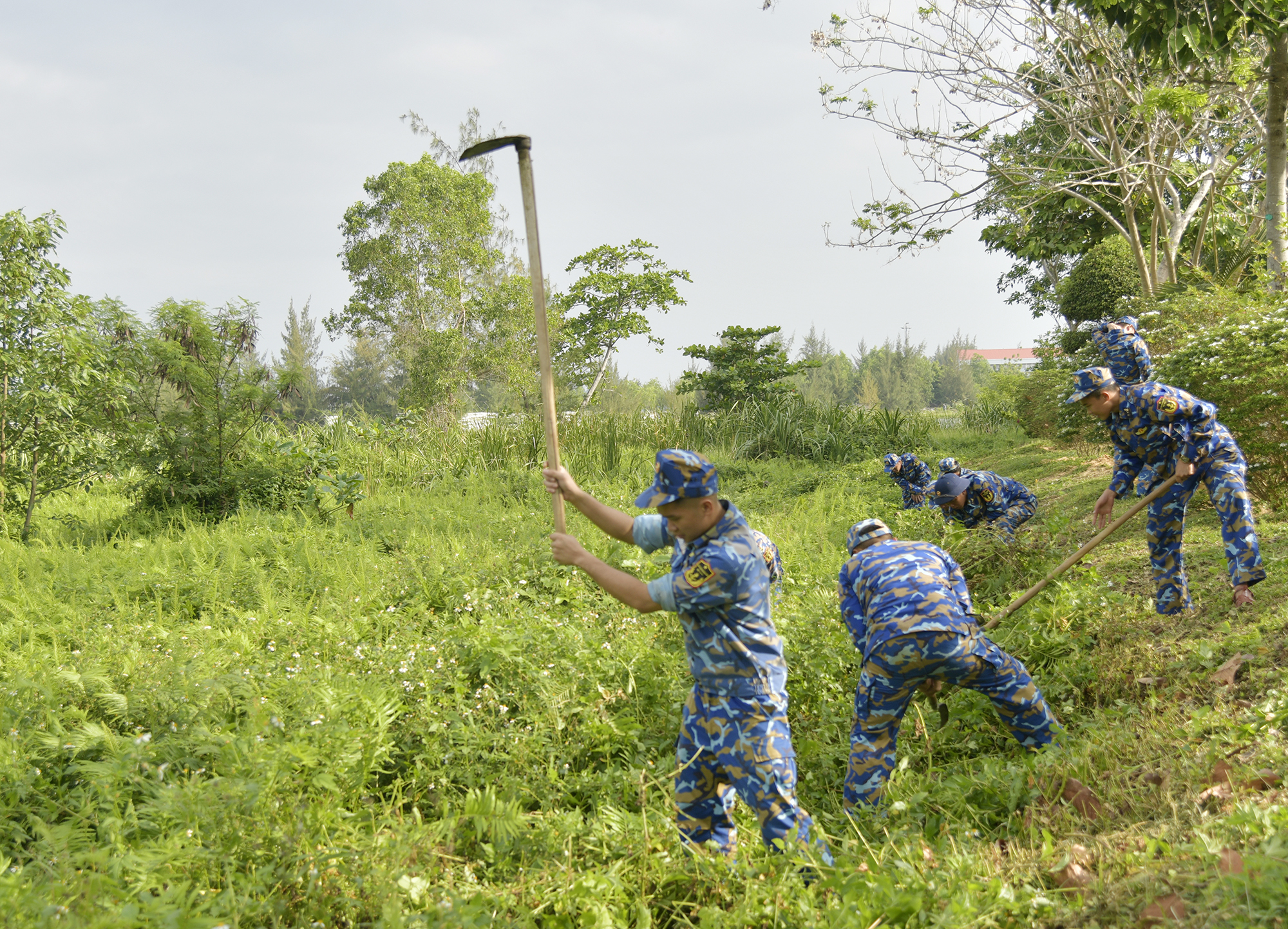 Các đoàn viên thanh niên phát quang, làm sạch môi trường