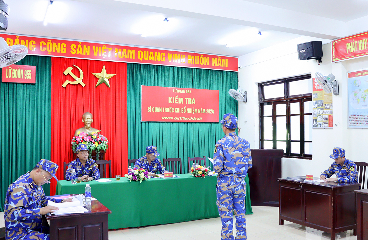 Từ ngày 23 đến 30/10, tại TP. Cam Ranh, tỉnh Khánh Hòa, Lữ đoàn 955, Vùng 4 Hải quân tổ chức đợt kiểm tra sĩ quan trước khi đề nghị bổ nhiệm năm 2024. Đây là những sĩ quan đang đảm nhiệm các chức danh từ trưởng ngành đến thuyền trưởng trên các tàu thuộc Lữ đoàn.