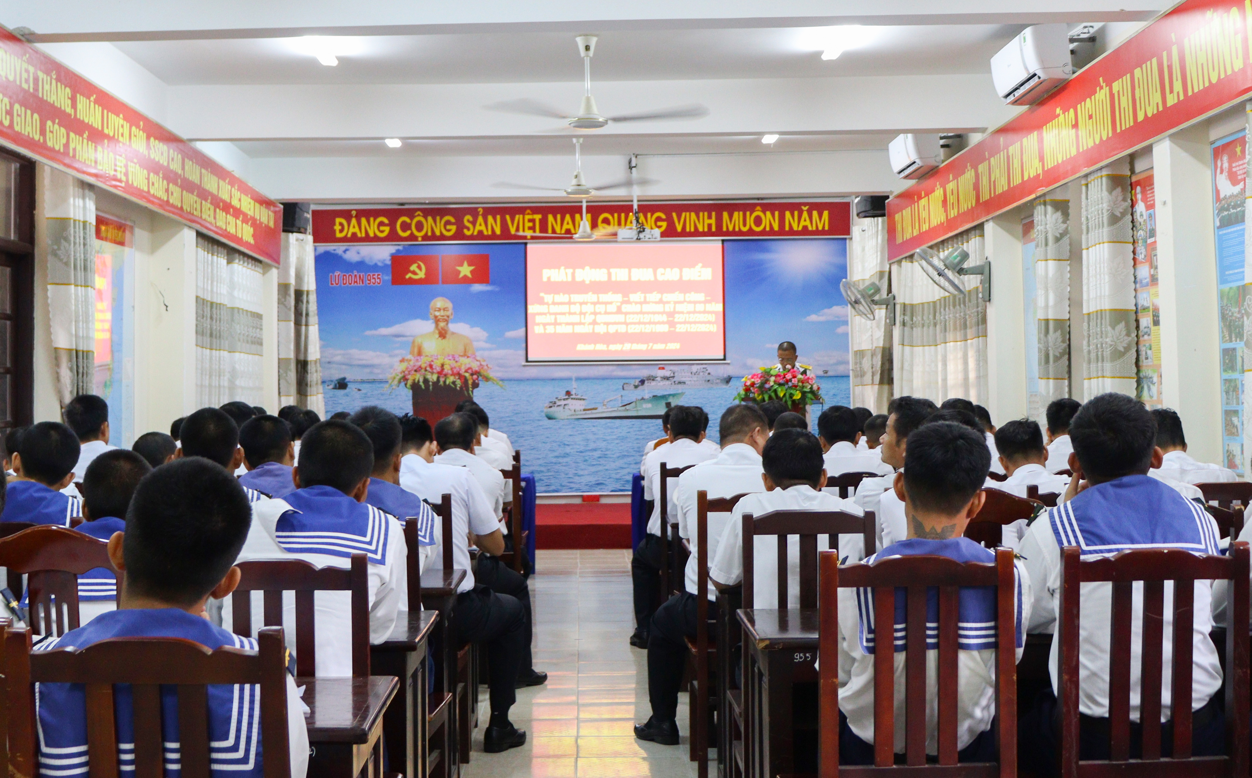 Sáng 30/7, tại TP. Cam Ranh, tỉnh Khánh Hòa, Lữ đoàn 955, Vùng 4 Hải quân phát động đợt thi đua cao điểm với chủ đề “Tự hào truyền thống - Viết tiếp chiến công - Xứng danh Bộ đội Cụ Hồ” chào mừng kỷ niệm 80 năm Ngày thành lập Quân đội nhân dân Việt Nam và 35 năm Ngày hội Quốc phòng toàn dân.