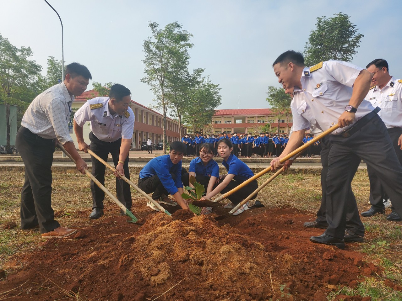 Đoàn công tác trồng tặng cây bàng quả vuông tại Trường THPT Võ Thị Sáu, huyện Bù Gia Mập