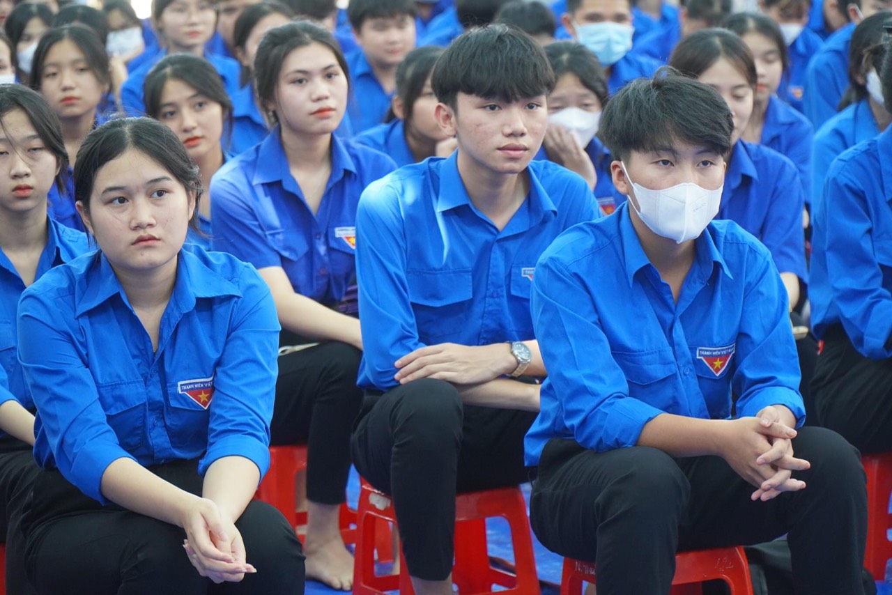 Quang cảnh buổi thông tin tại Trường THPT Võ Thị Sáu, huyện Bù Gia Mập