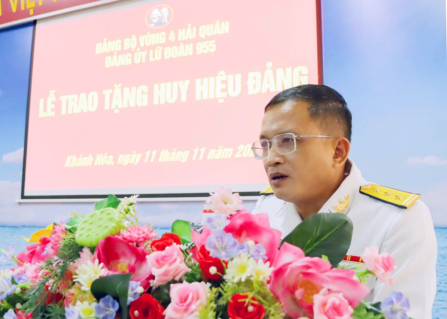 Sáng 11/11, tại Cam Ranh, Khánh Hòa, Đảng ủy Lữ đoàn 955, Vùng 4 Hải quân tổ chức Lễ trao tặng Huy hiệu 30 năm tuổi Đảng đối với đồng chí Trung tá QNCN Lê Đức Thanh, đảng viên Chi bộ Tàu 525, Đảng bộ Hải đội 413.
